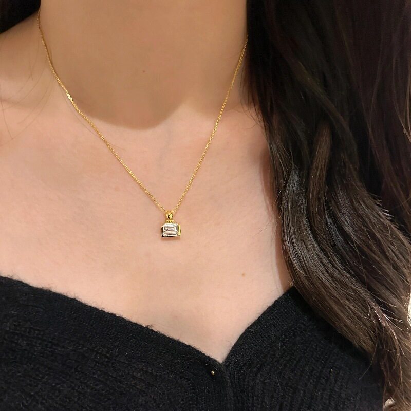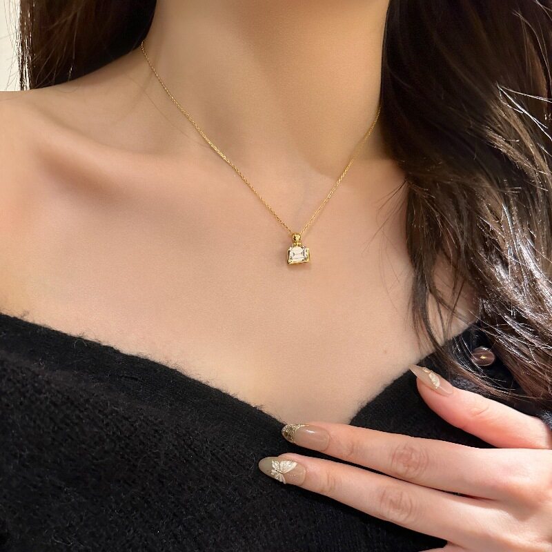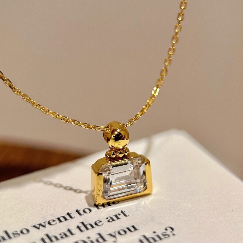 v金高版金色香水瓶吊坠项链小众精致简约时尚镶钻气质款锁骨链