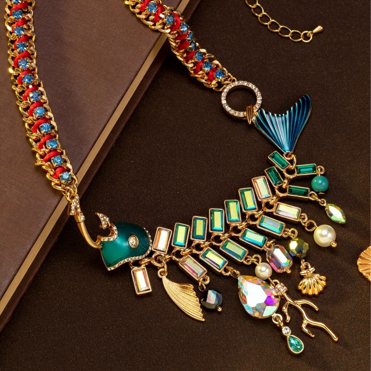 中古vintage镶钻鱼骨流苏项链轻奢气质款毛衣项链中古鱼骨项链女