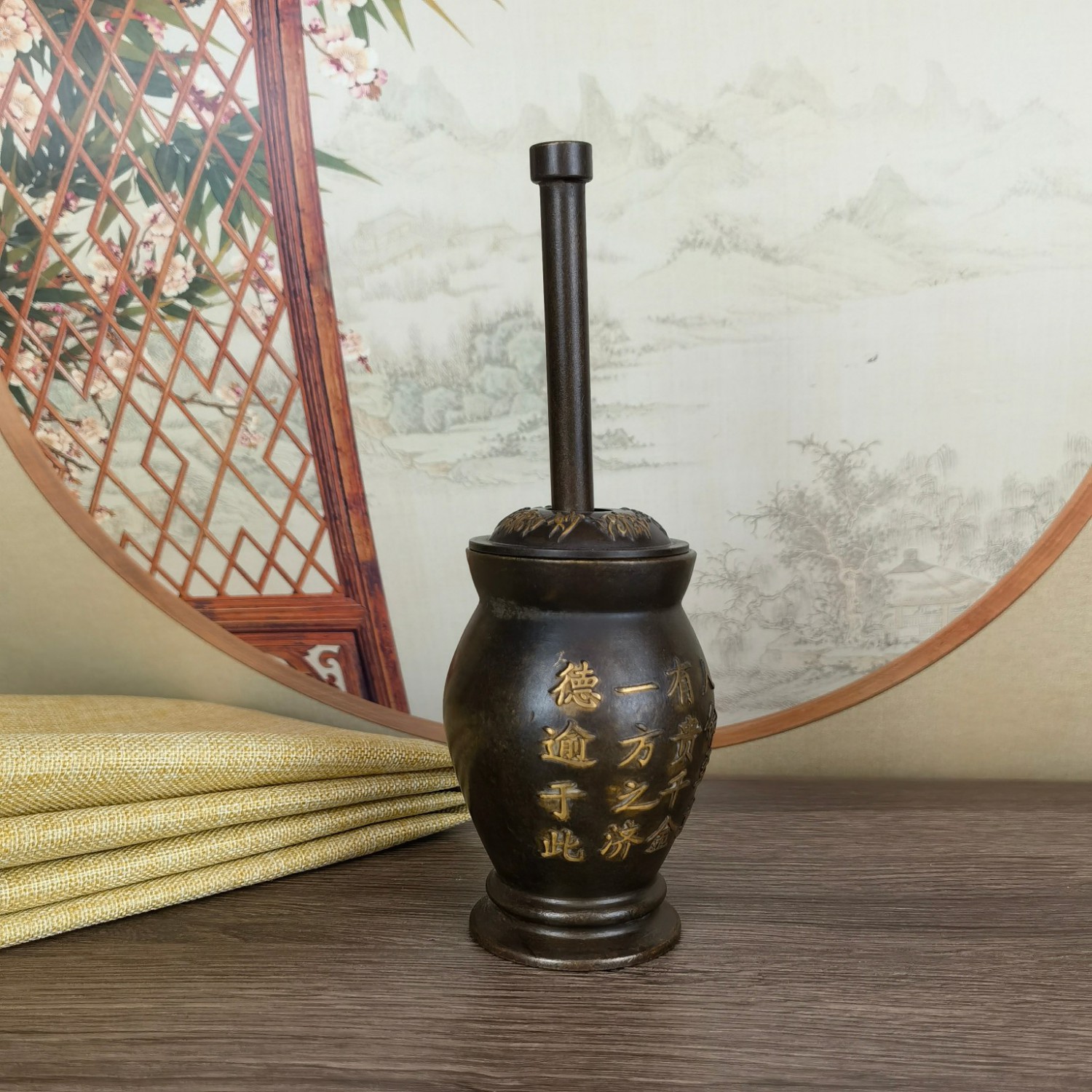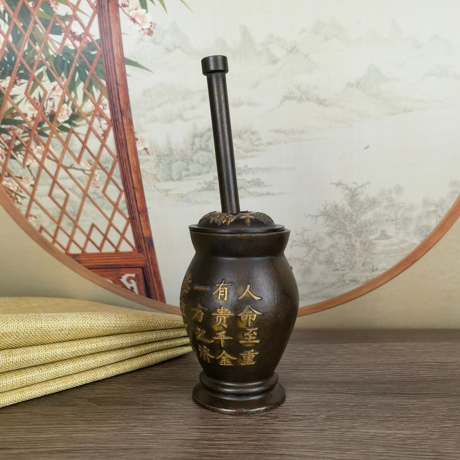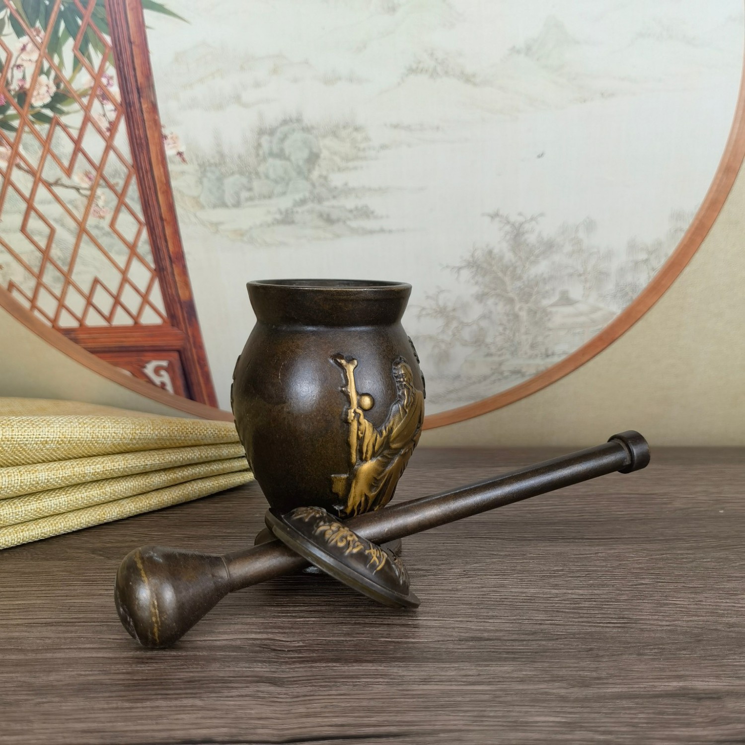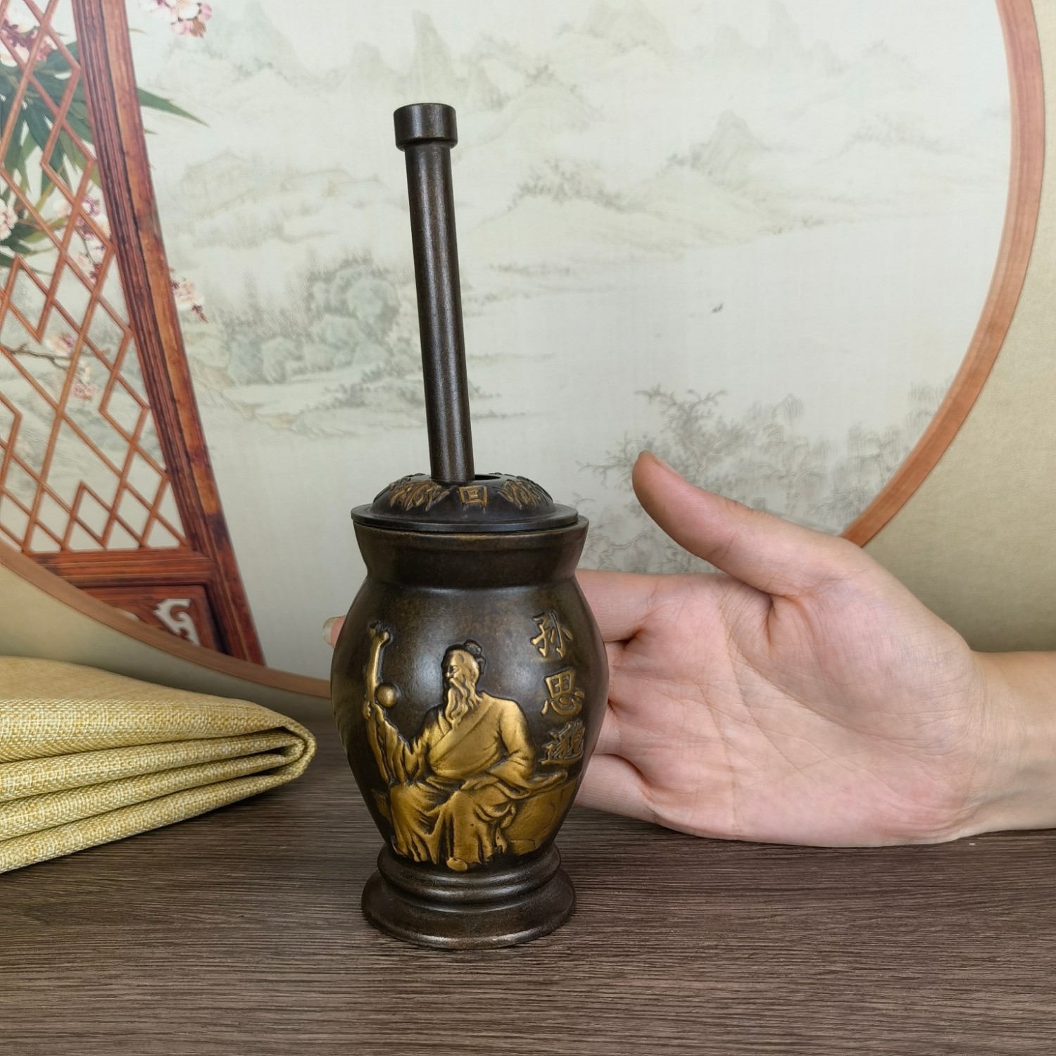 黄铜做旧点金孙思邈捣药罐子摆件 铜家居店铺用品摆设收藏礼品