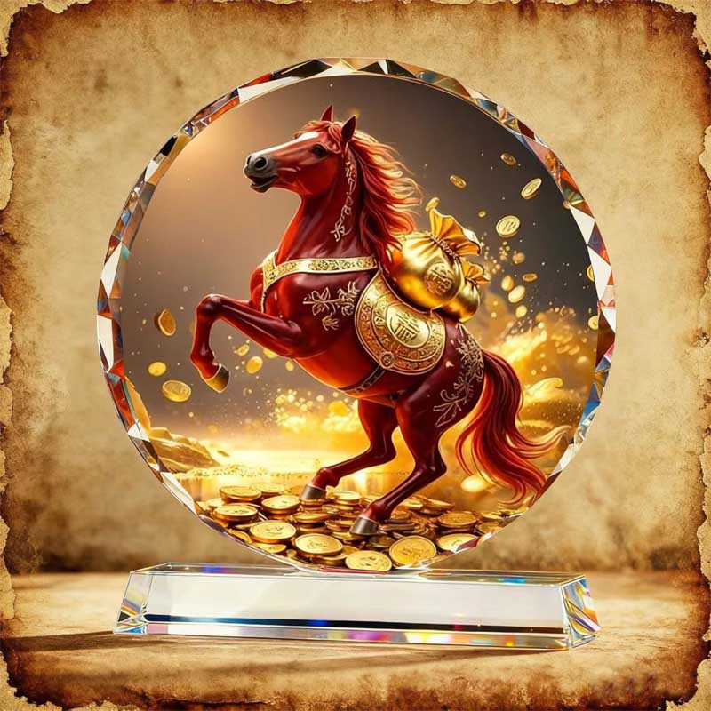水晶财神马摆件招财风水家居装饰品办公室鞋柜摆件马上发财有钱