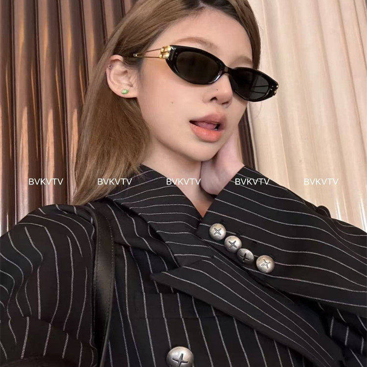 BVKV时髦女孩出街匕备~26s金属复古猫眼黑色太阳眼镜 太阳眼镜