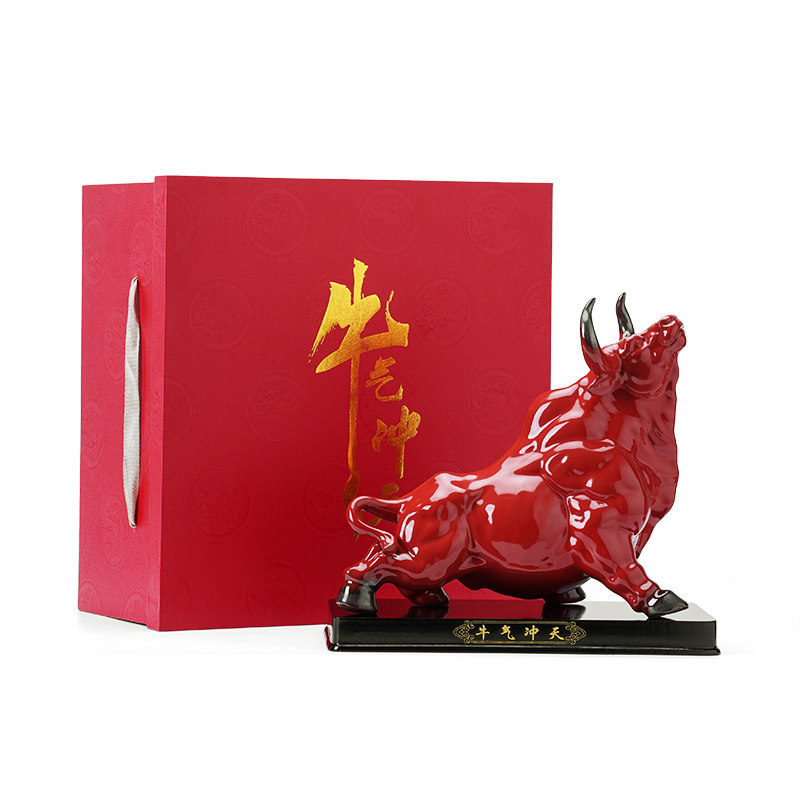 大号红色陶瓷动物牛年牛气冲天开业定制礼品摆件办V公室桌面装饰