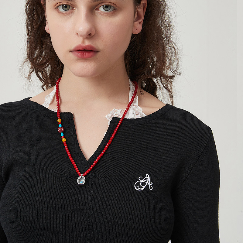 AWE铜匣嘎乌盒红玛瑙串珠项链张晓钰白百何同款蓝松石点缀中长款