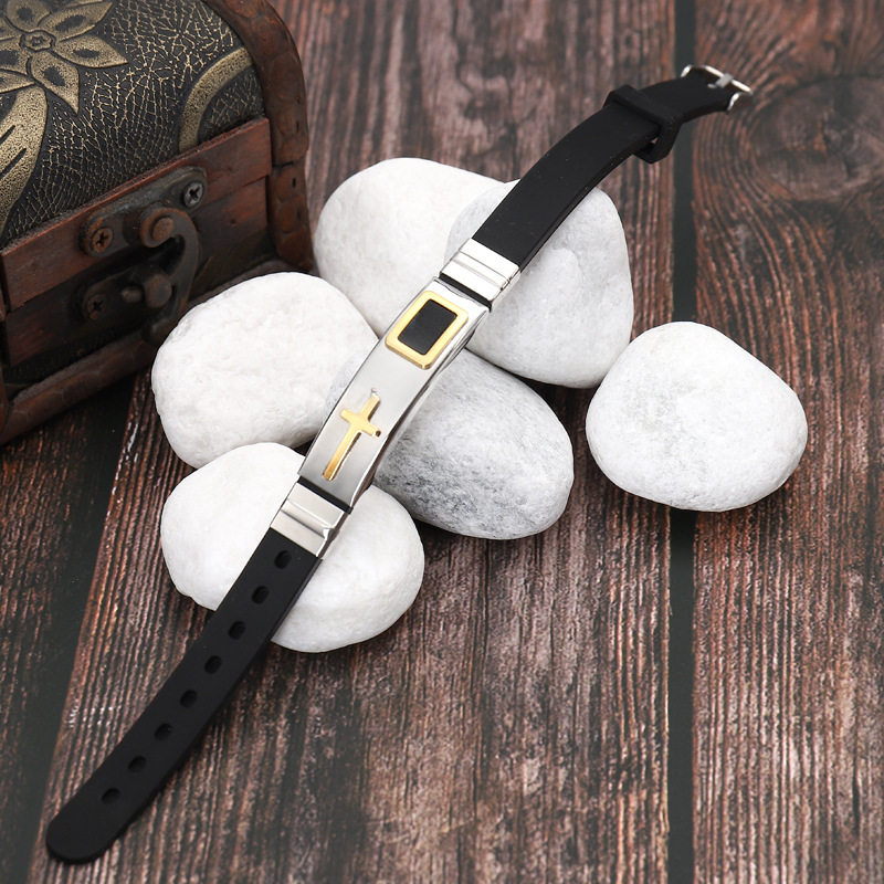 钛钢十字架男士手链腕带表带运动手环男款潮流痞帅简约手饰配饰男