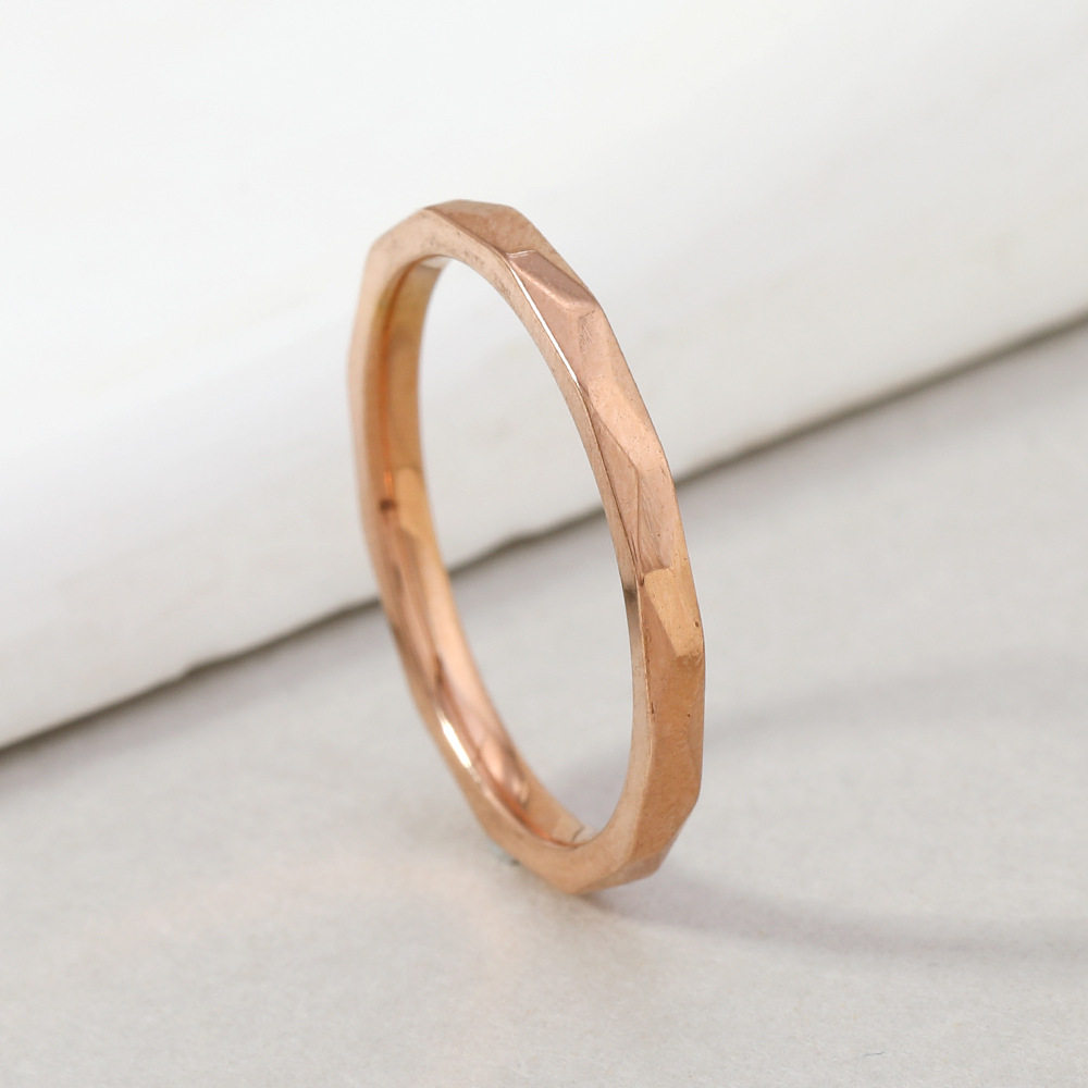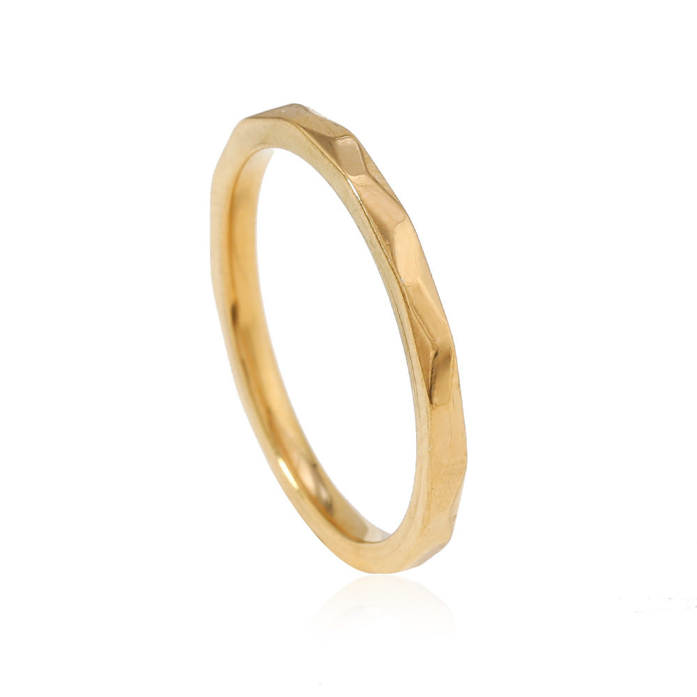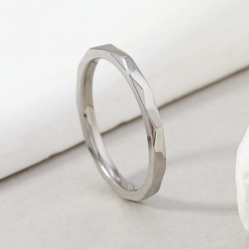 欧美钛钢戒指女 小众高级感轻奢2mm条形波浪素圈多面戒指饰品厂