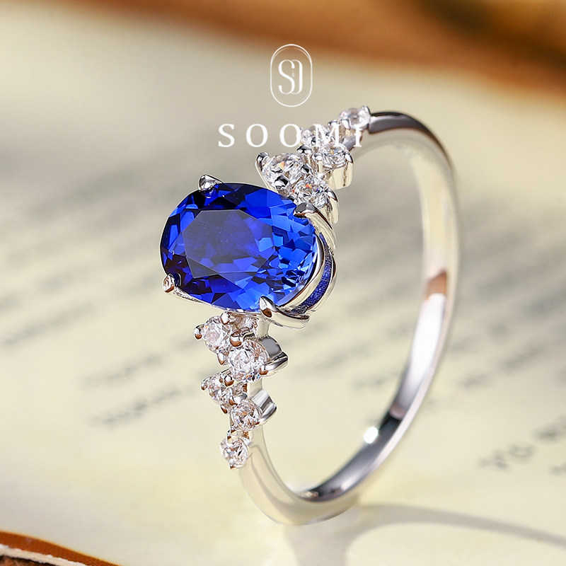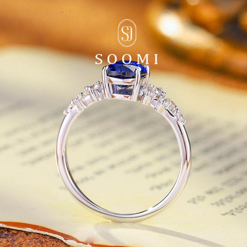 【SOOMI 璇玑】蓝宝石戒指1.8ct培育皇家蓝彩宝通勤925银女戒