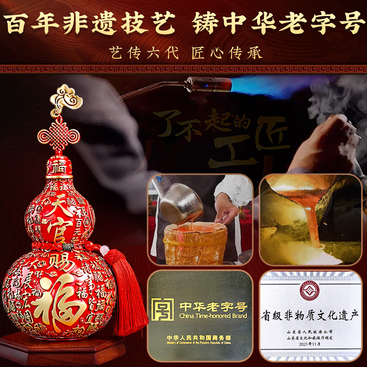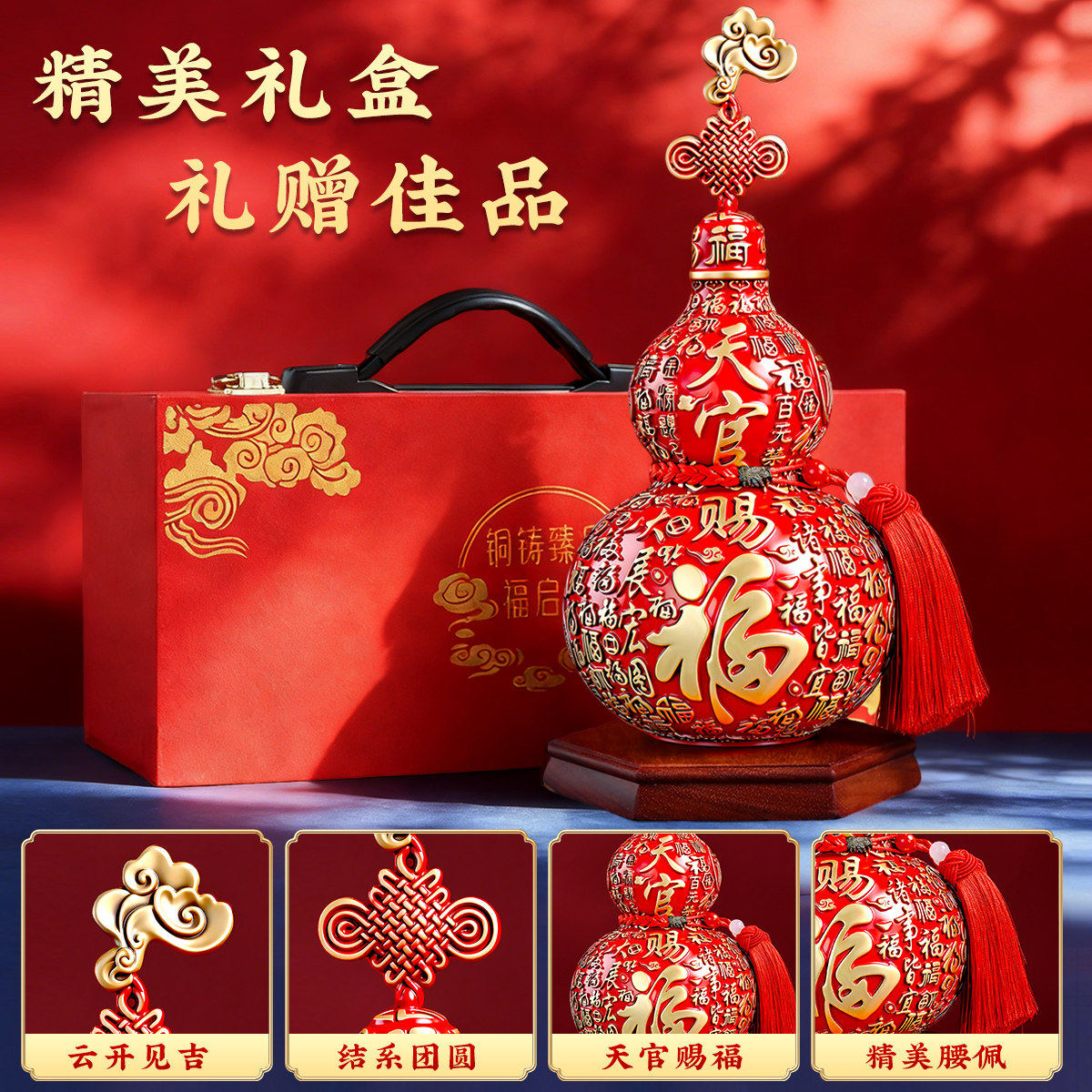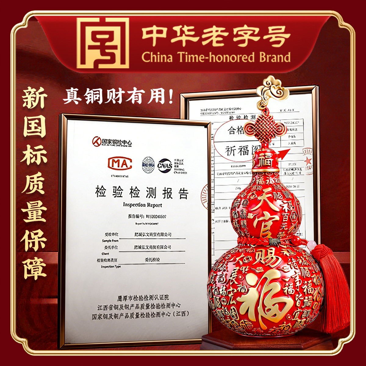 福禄万代天官赐福铜葫芦摆件百福招财开口宅乔迁新居店铺开业送礼
