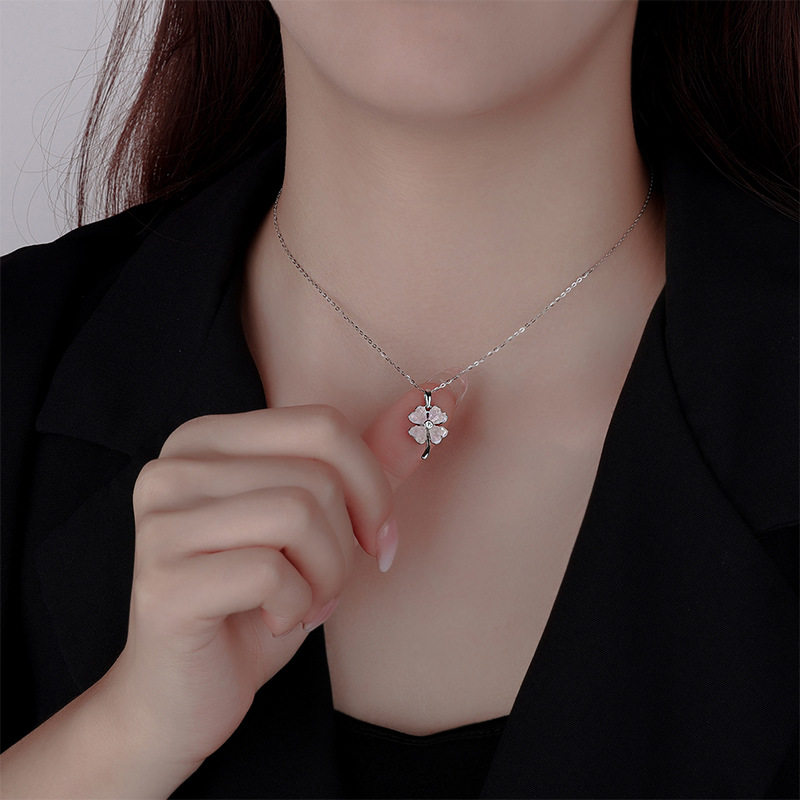 帝丰原创S999纯银四叶草之恋项链女蓝色冰晶幸运花颈链小众锁骨链