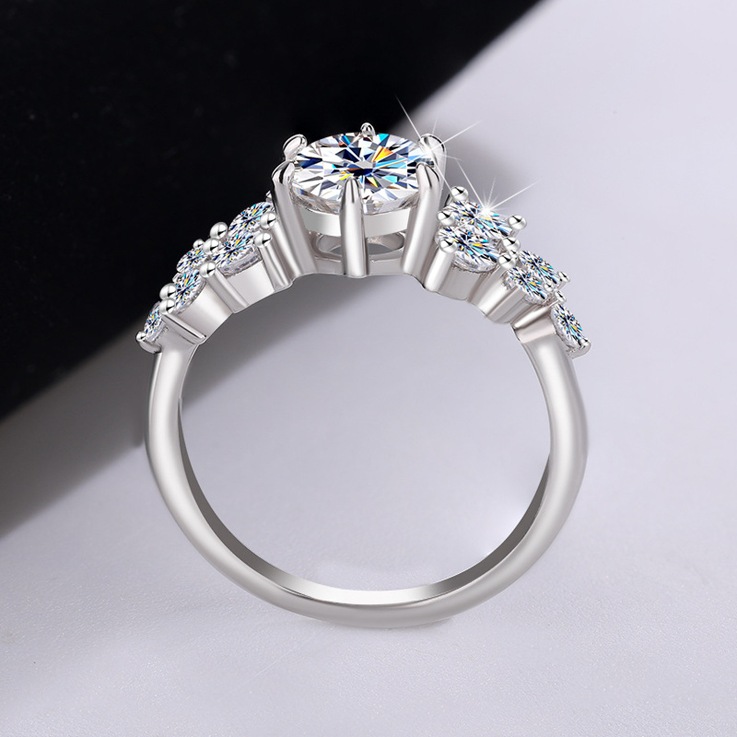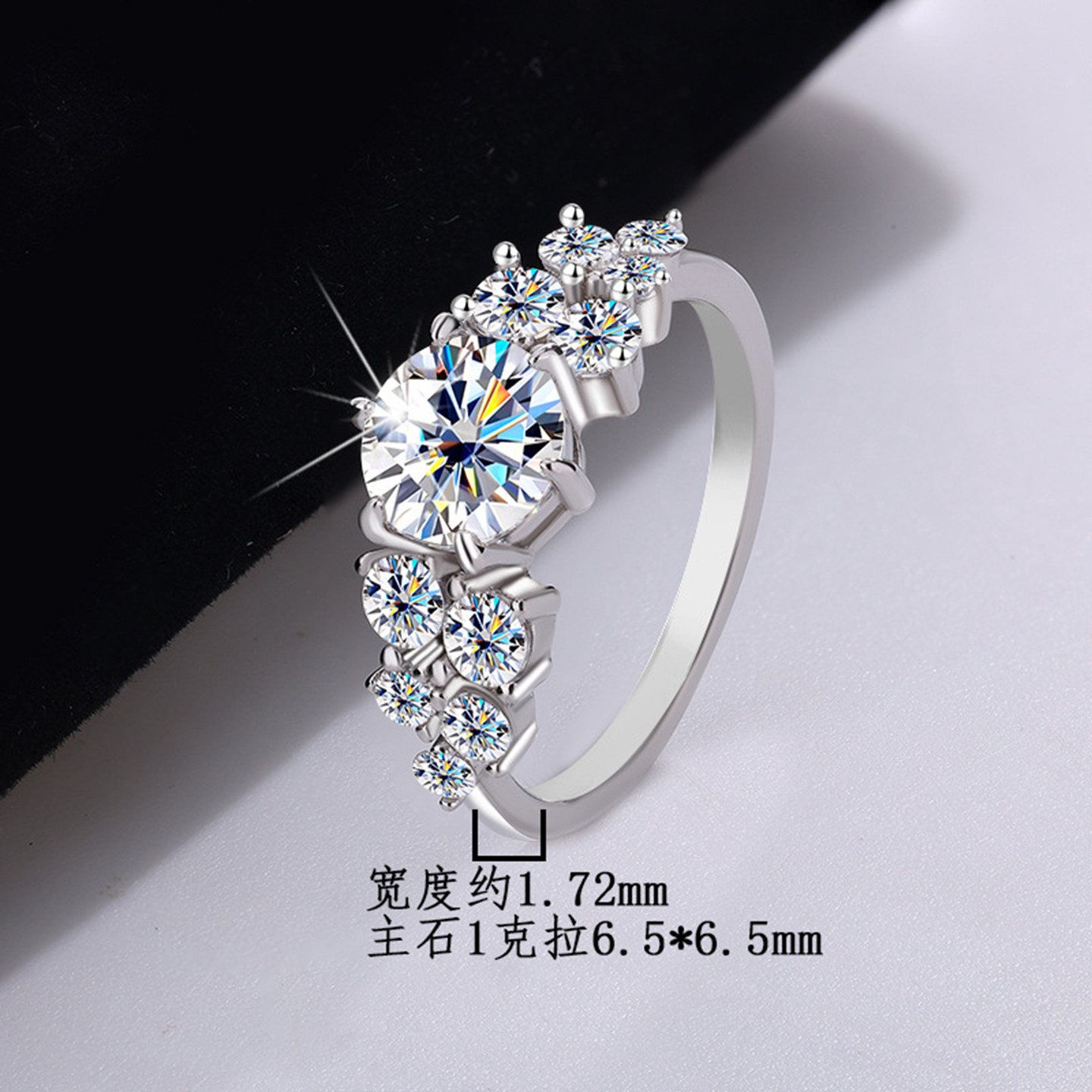 S925银莫桑石满天星辰戒指女精致小巧日常简约百搭款节日礼物