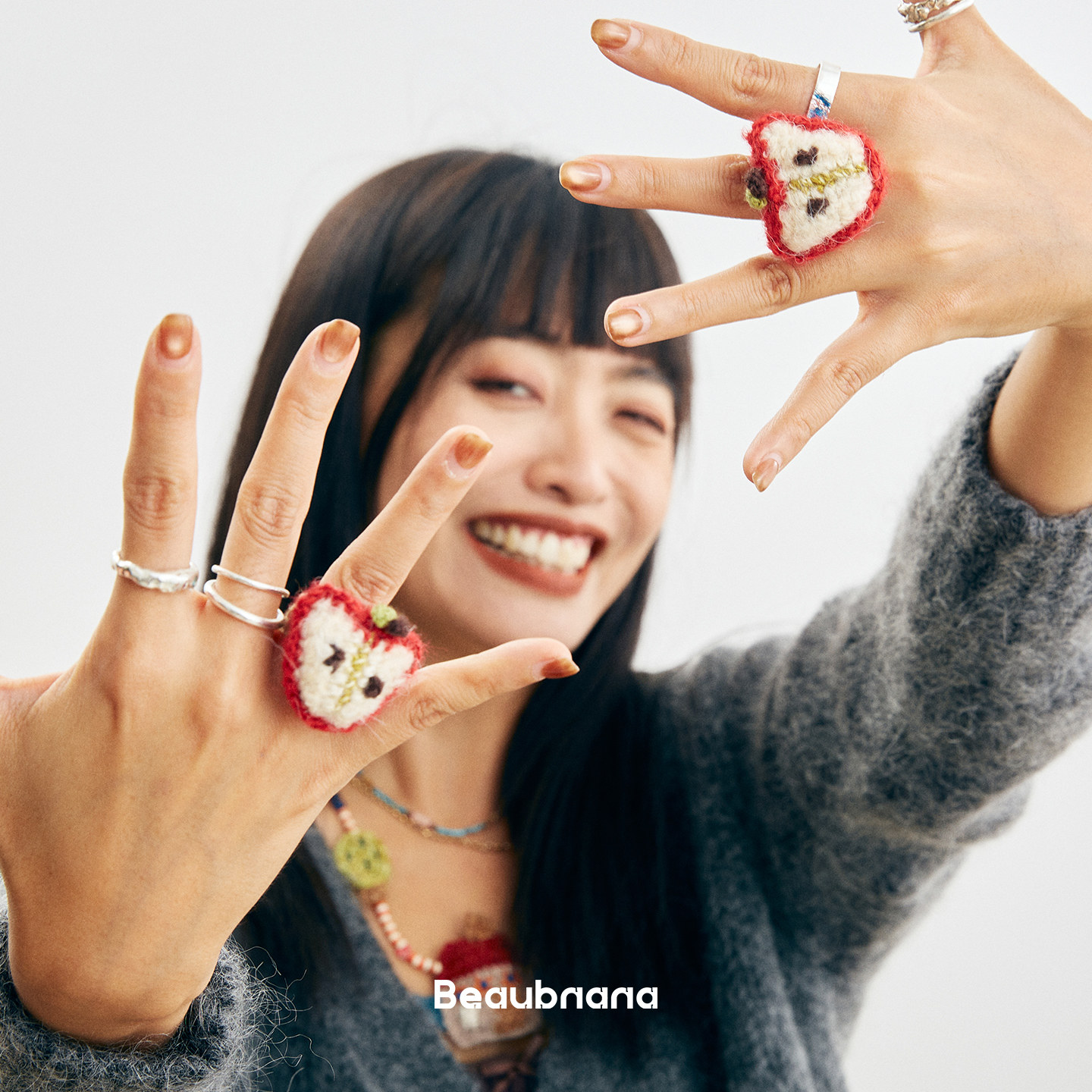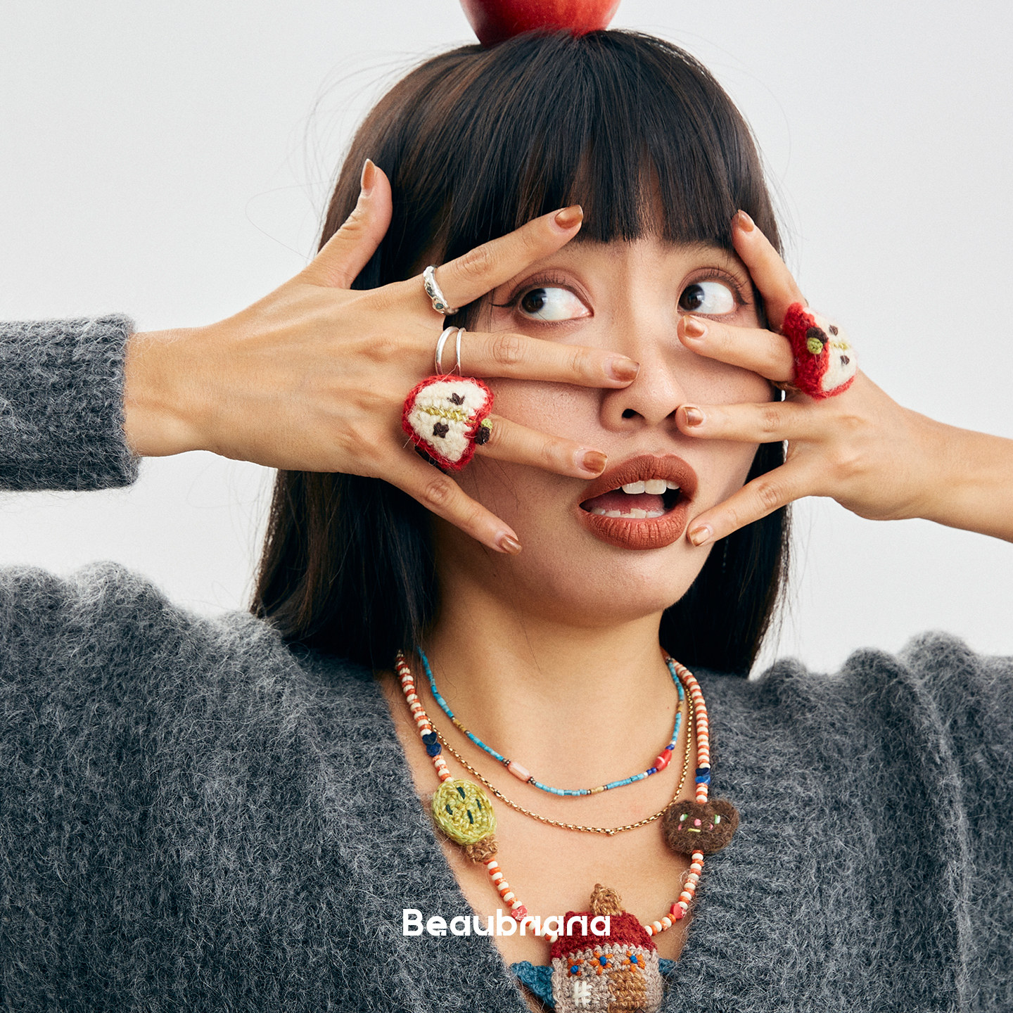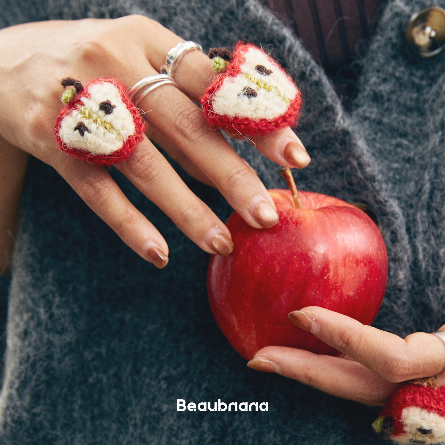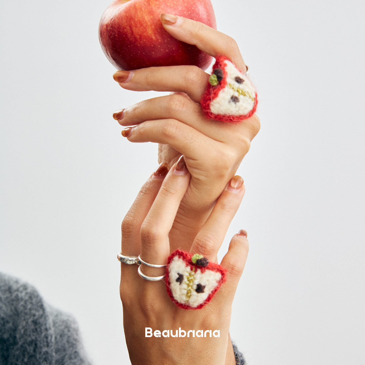 小黄香蕉手钩苹果戒指女毛线针织新年穿搭红色圣诞吉祥喜庆送礼物