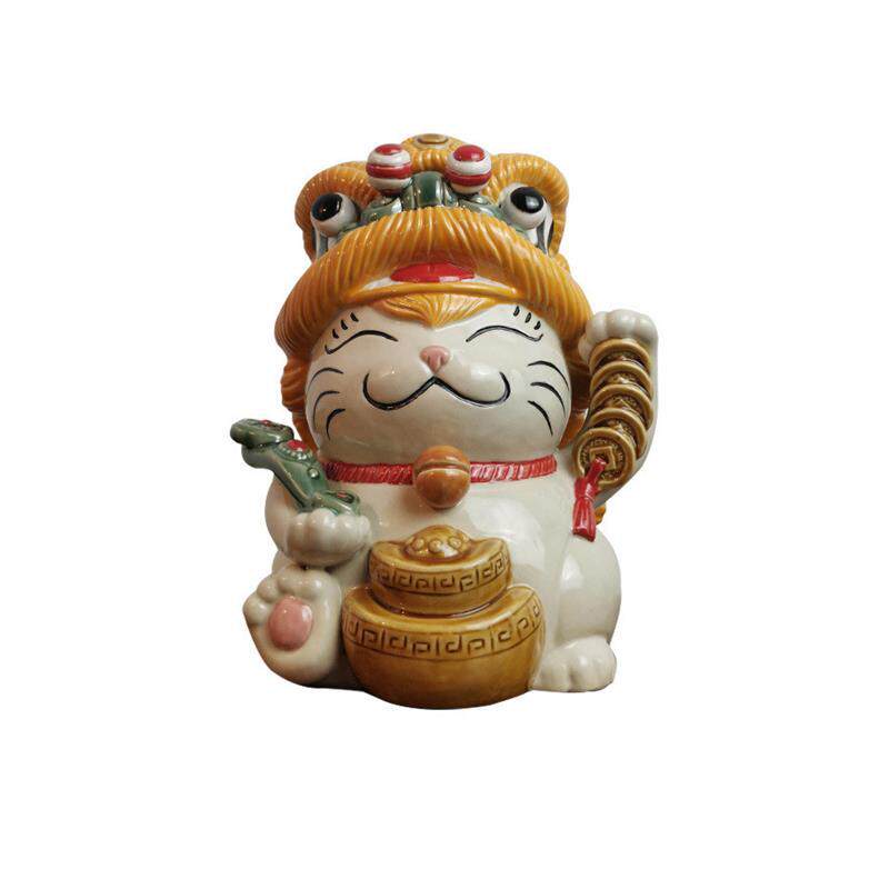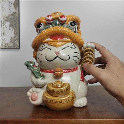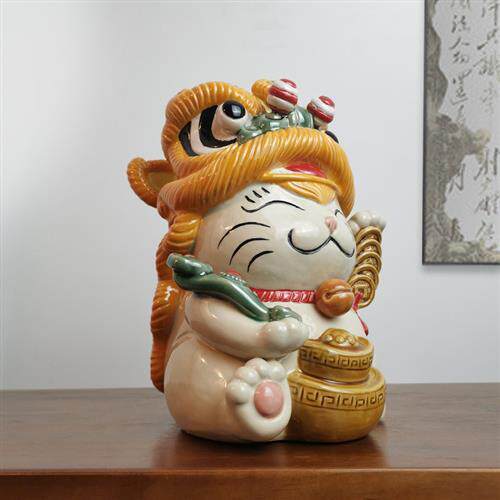 醒狮招财猫可爱创意陶瓷摆件开业舞狮店铺开张收银台迎宾装饰礼品