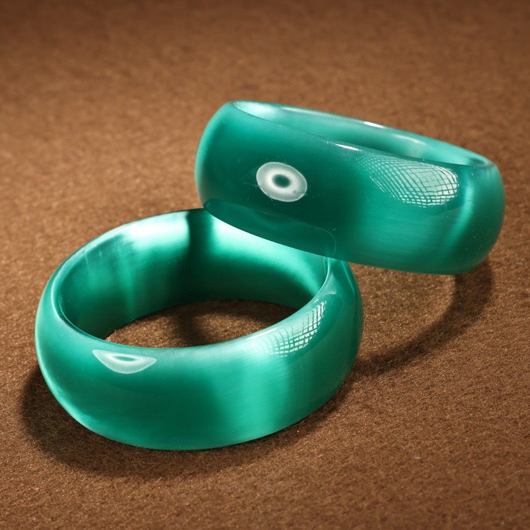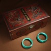 古玩古董旧藏纯天然孔雀蓝猫眼石手镯女一对带漆器盒子玉镯子复古