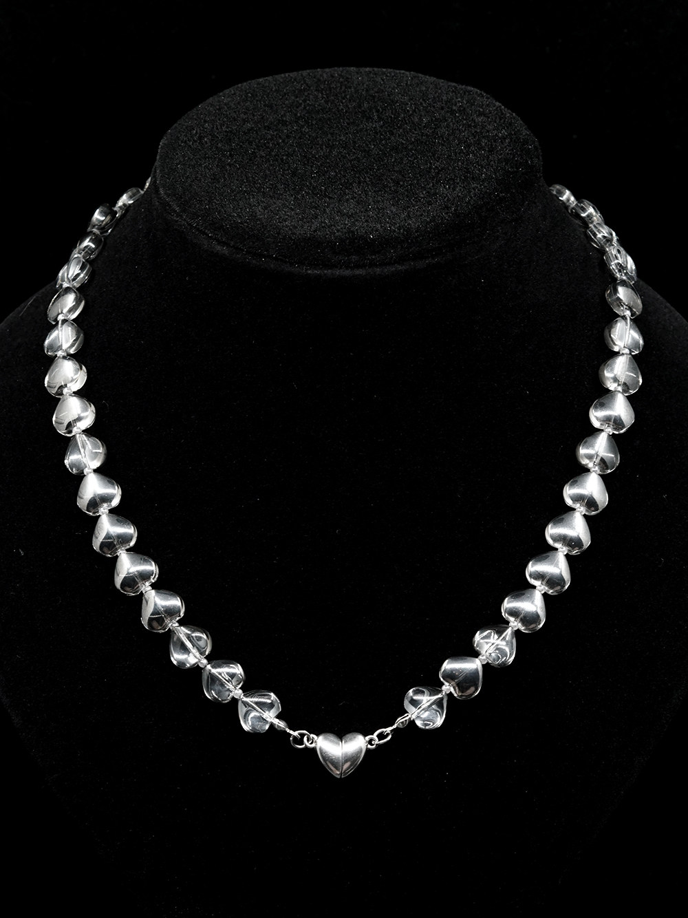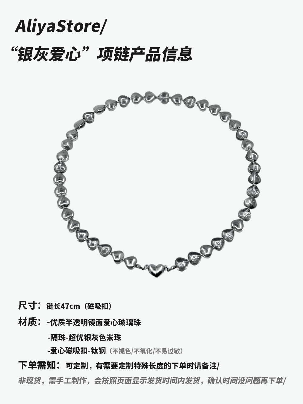 AliyaStore原创手作银灰爱心项链小众设计磁吸扣锁骨链甜酷颈链