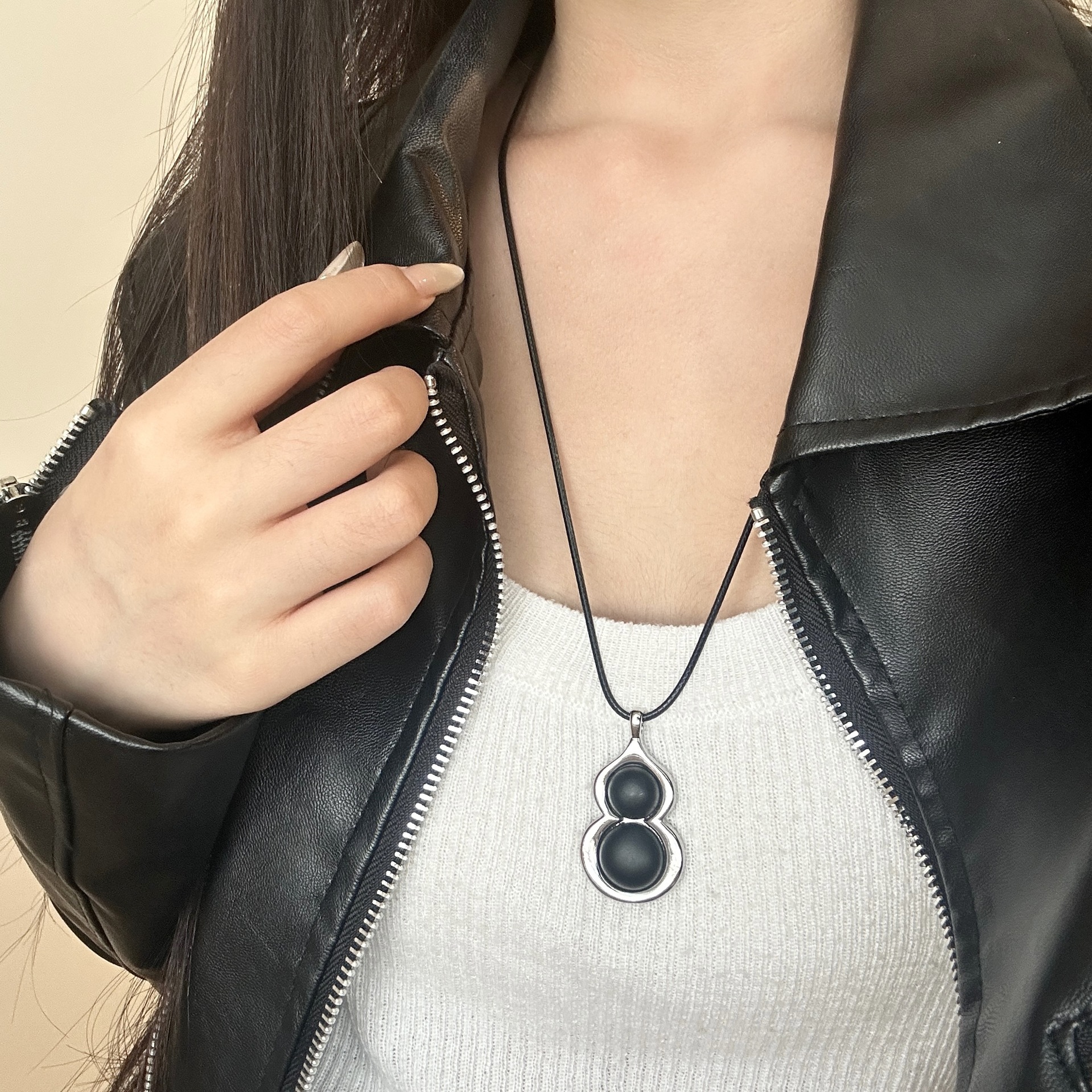 黑色葫芦吊坠项链女感大气复古秋冬长款毛衣链配饰女