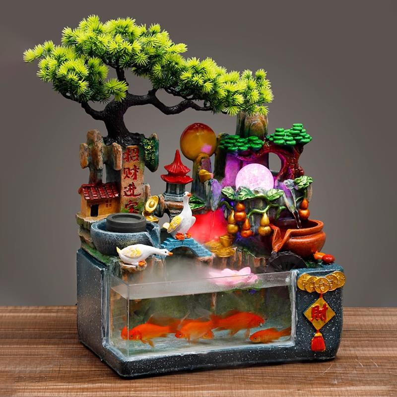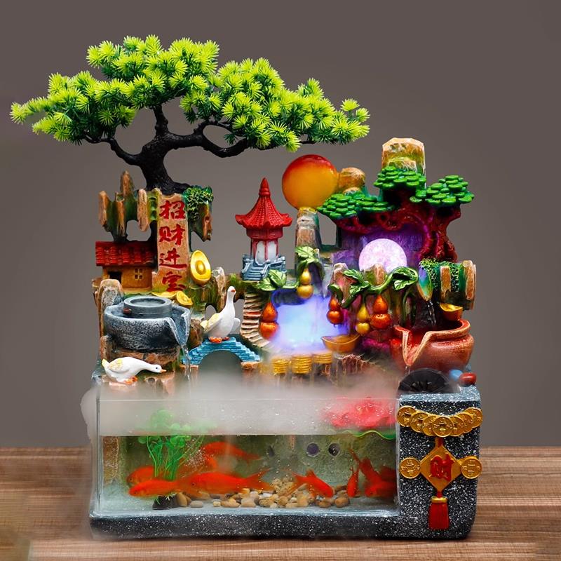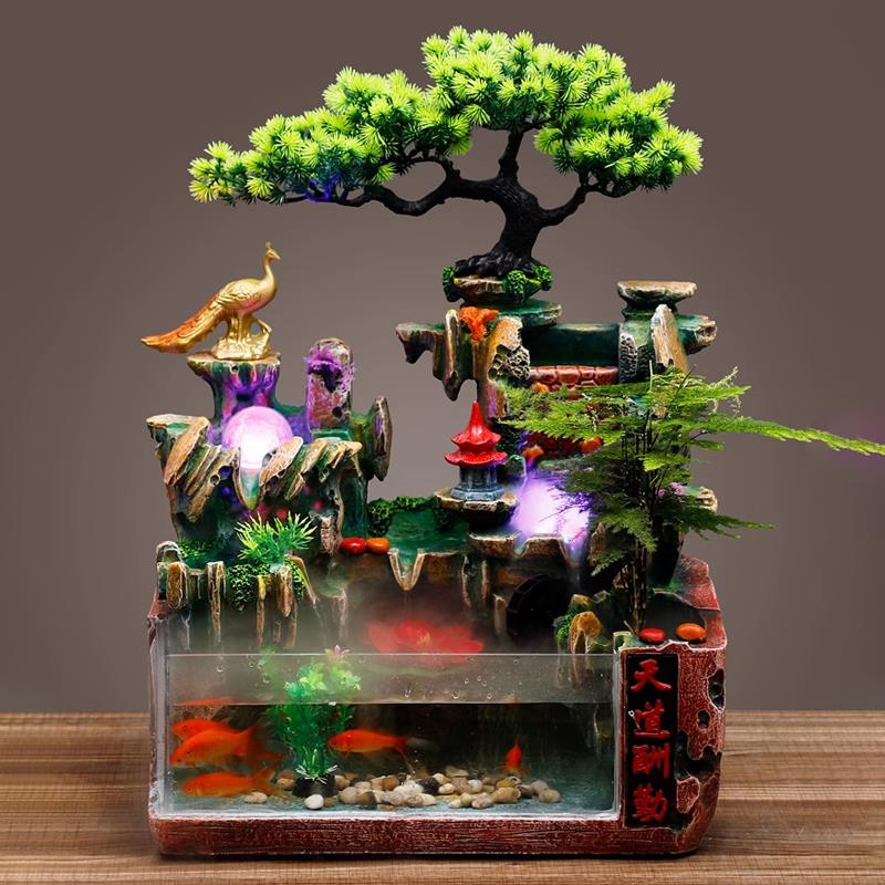 流水鱼缸招财假山喷泉摆件循环水水车风水轮时来运转风生水起