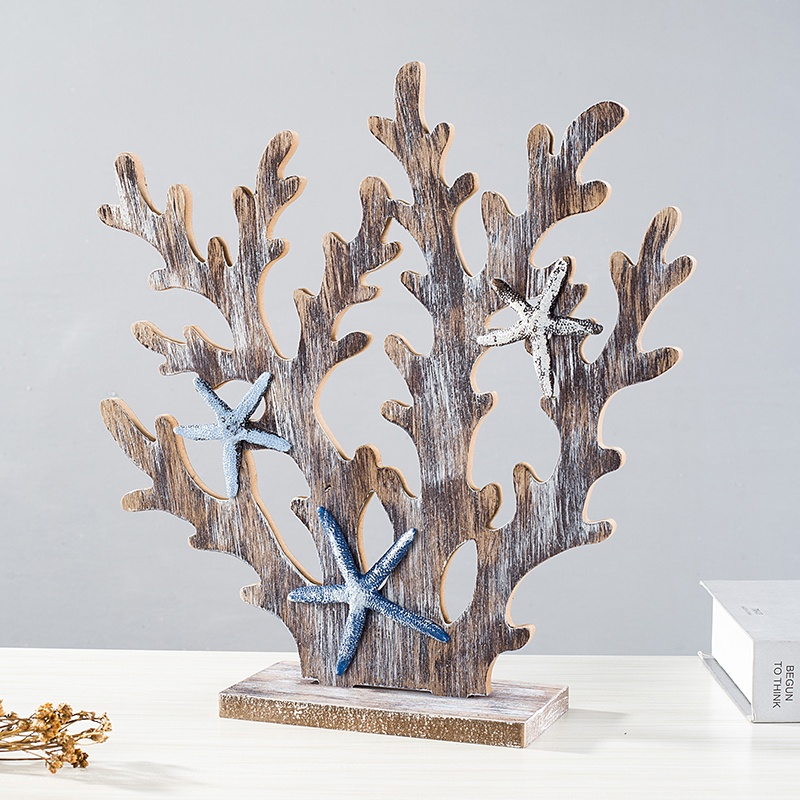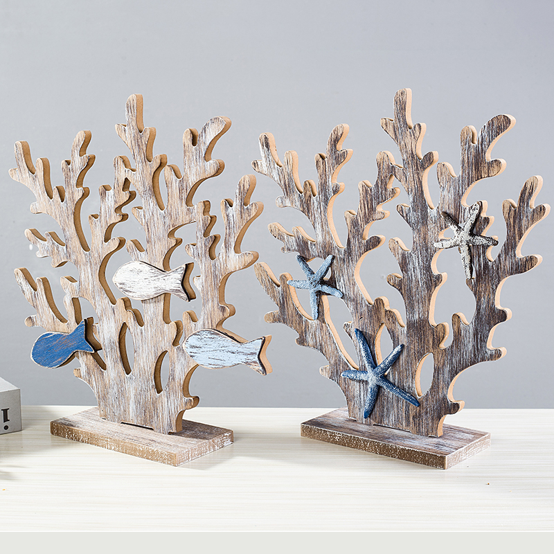 地中海风格家居装饰品 海洋复古木质珊瑚树桌面摆件 装饰新房摆设