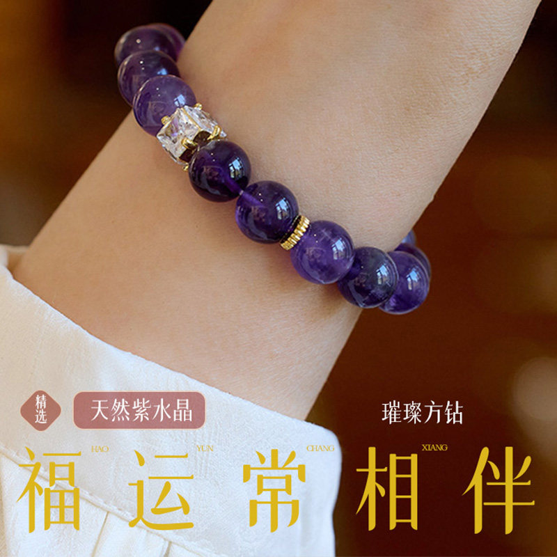 紫水晶手链手串天然转运珠黄财运女新款精致高级首饰手钏佛珠普陀