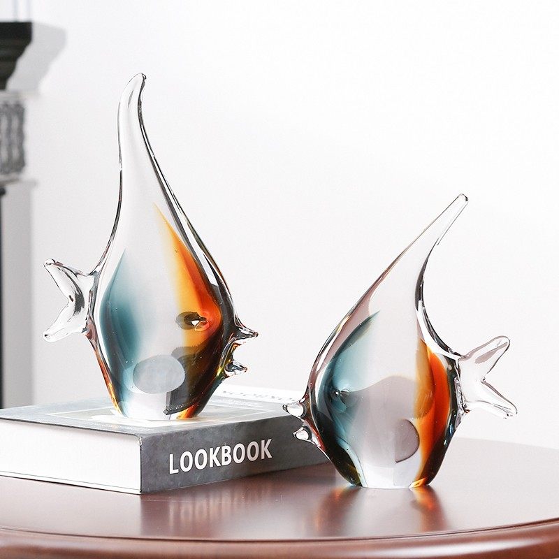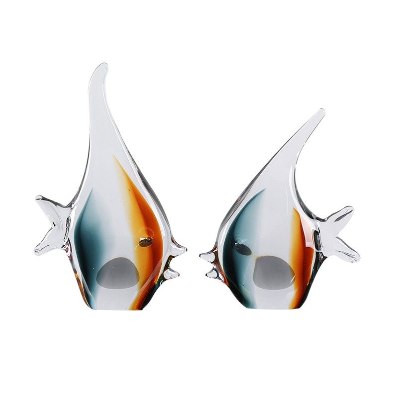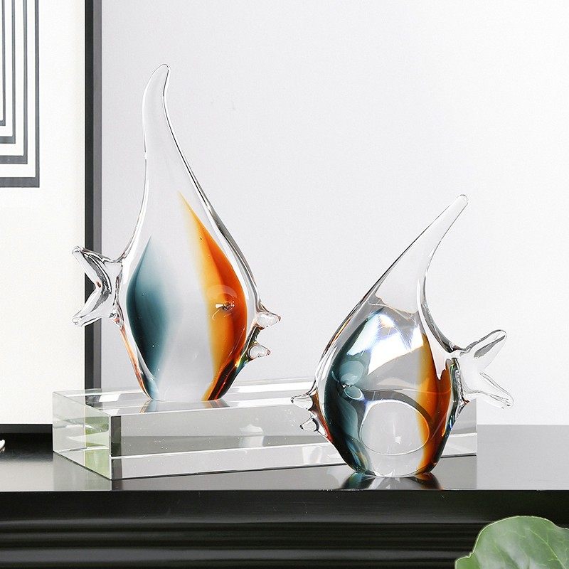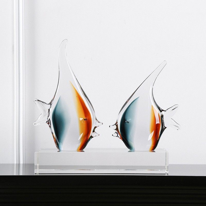 招财鱼玻璃摆件抽象热带鱼客厅简约样板房玄关装饰品年年有余送礼