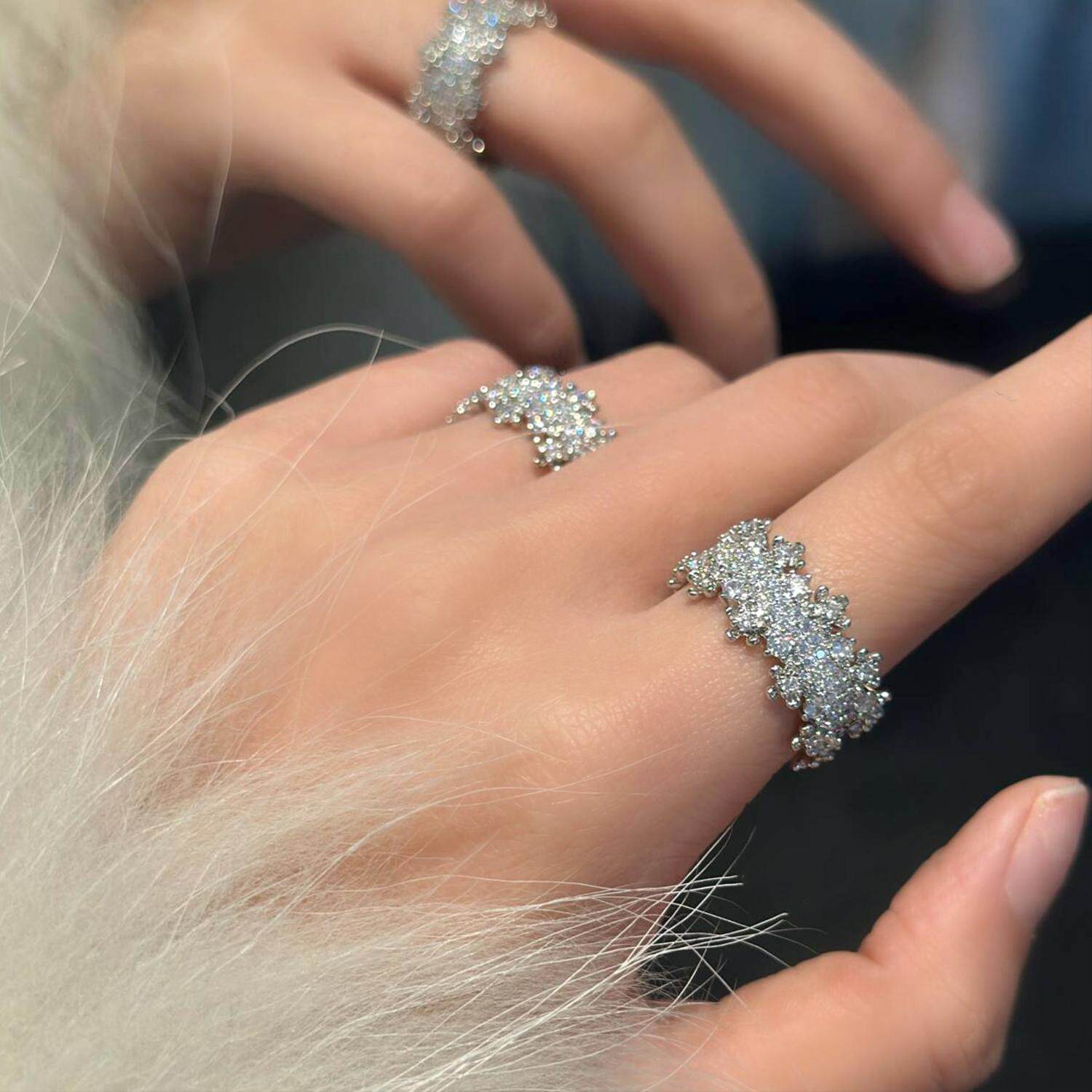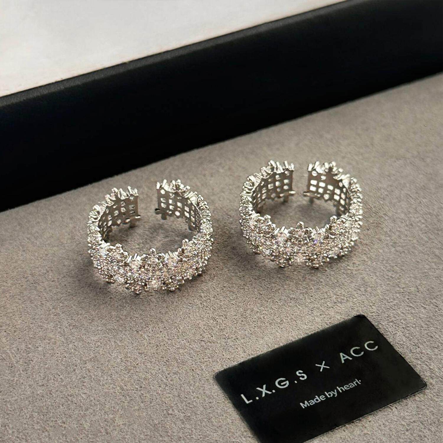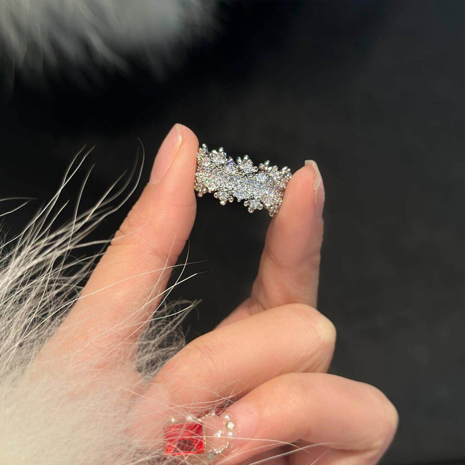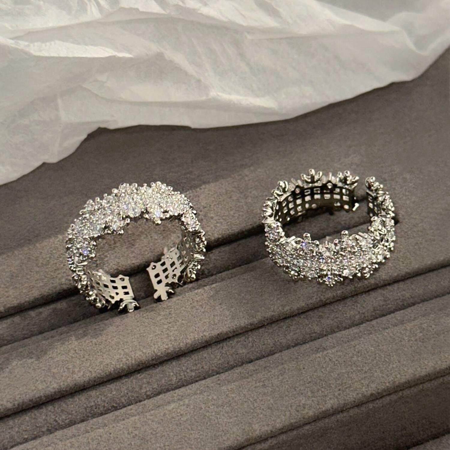 轻奢满天星闪钻锆石银色戒指女新款小众设计感精致食指戒环可调节