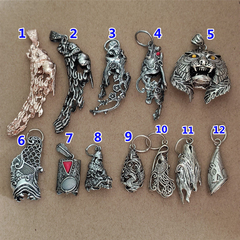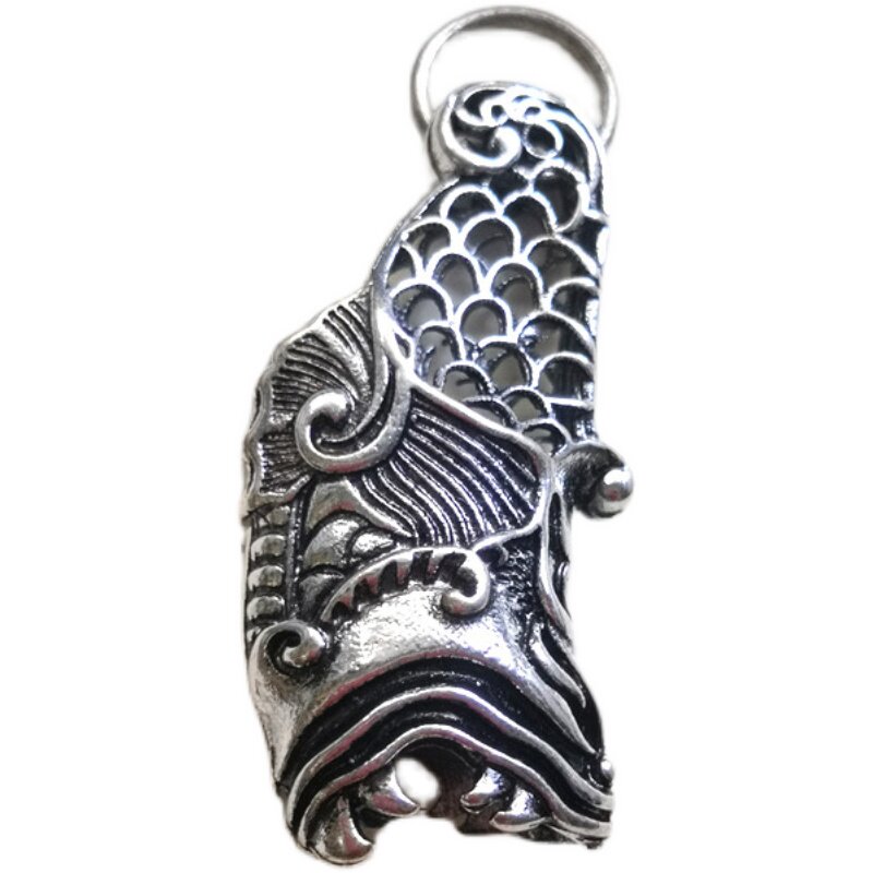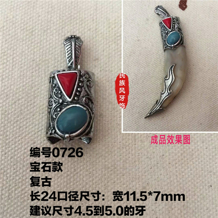 民族镀银鹿角套狗牙包银镶嵌配饰套牙尖套挂饰DIY龙凤吊坠托