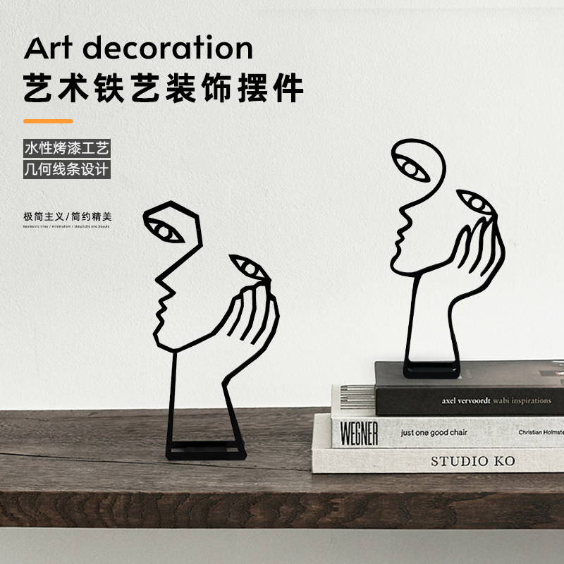 简约思考者铁艺办公室桌面摆件书房线条工艺品装饰书架摆设礼物