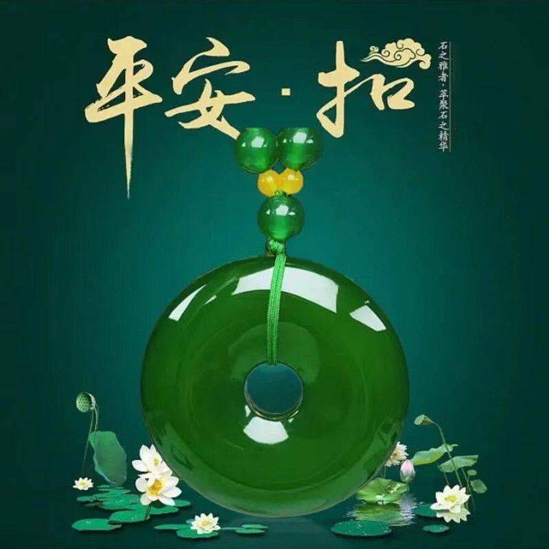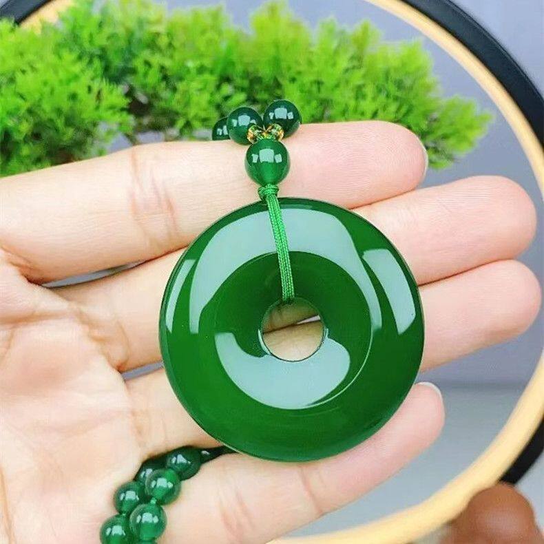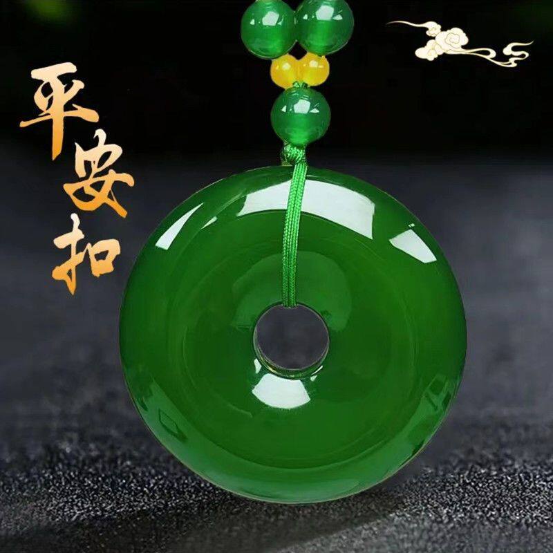 高档帝王绿色玉石玉髓平安扣大号祖母绿玉坠挂坠毛衣链长款保真品