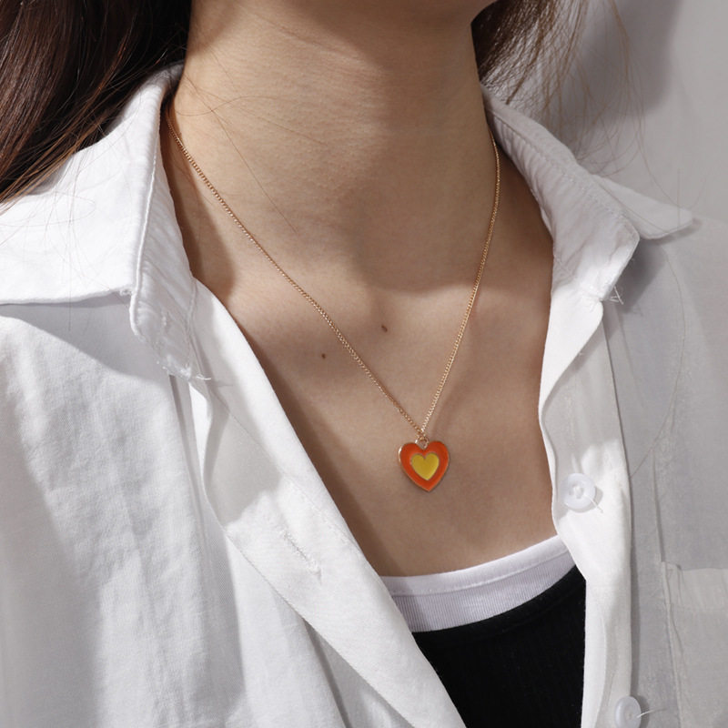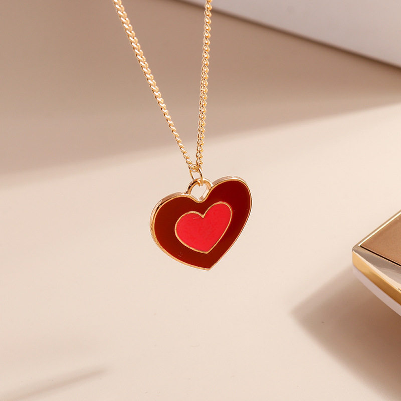 Simple Cute Heart Pendant Necklace for Women Girls Gold Colo