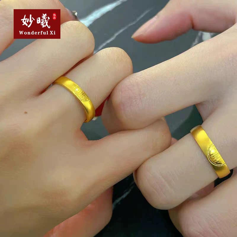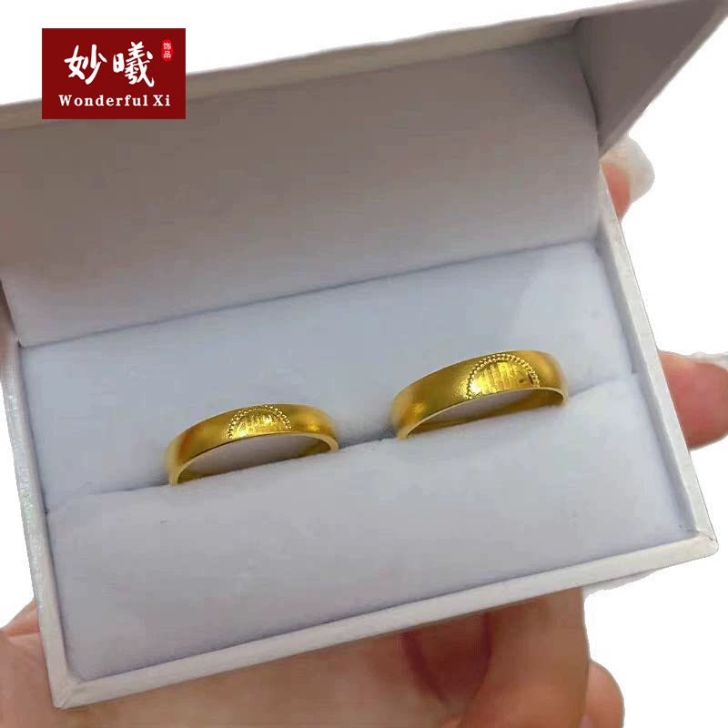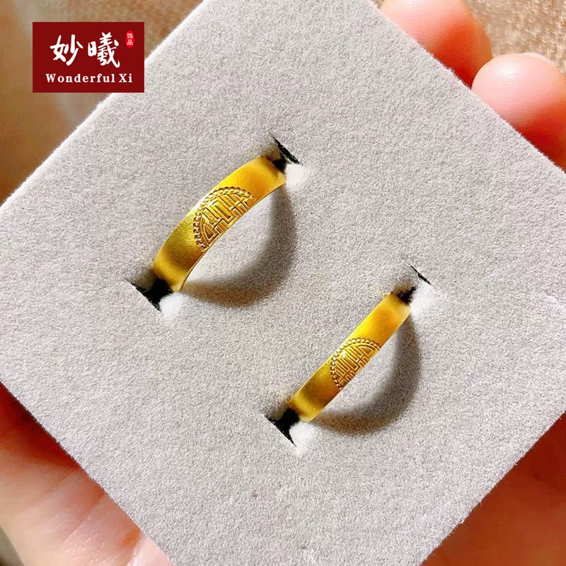 妙曦沙金双喜戒指男女款假黄金古法仿真新娘结婚三金道具情侣对戒