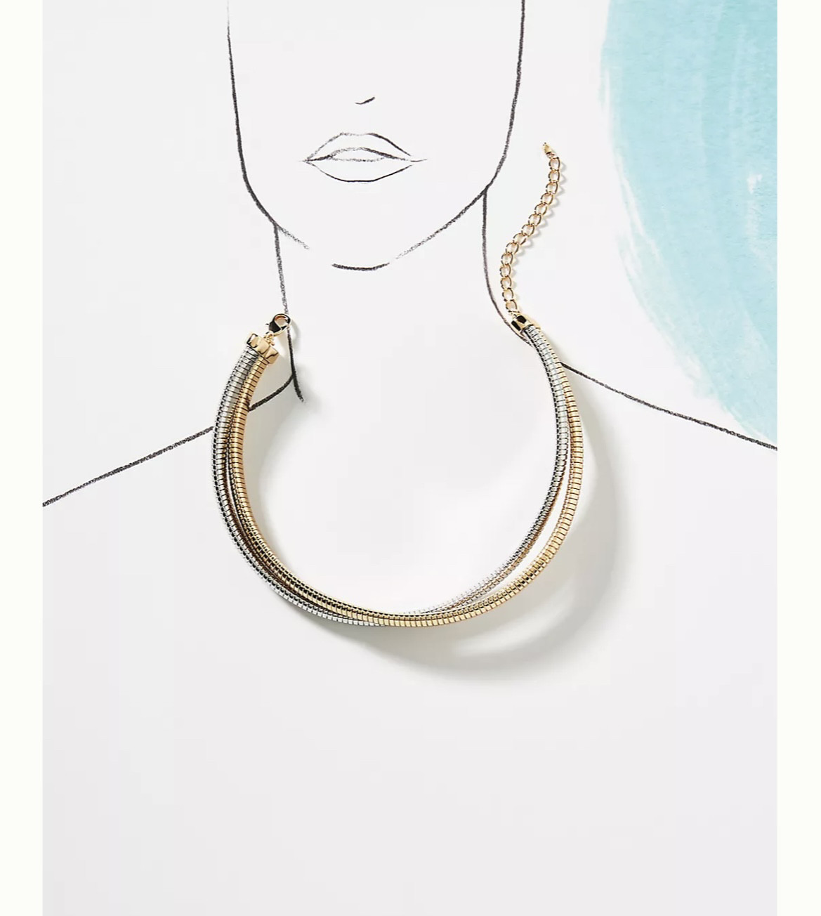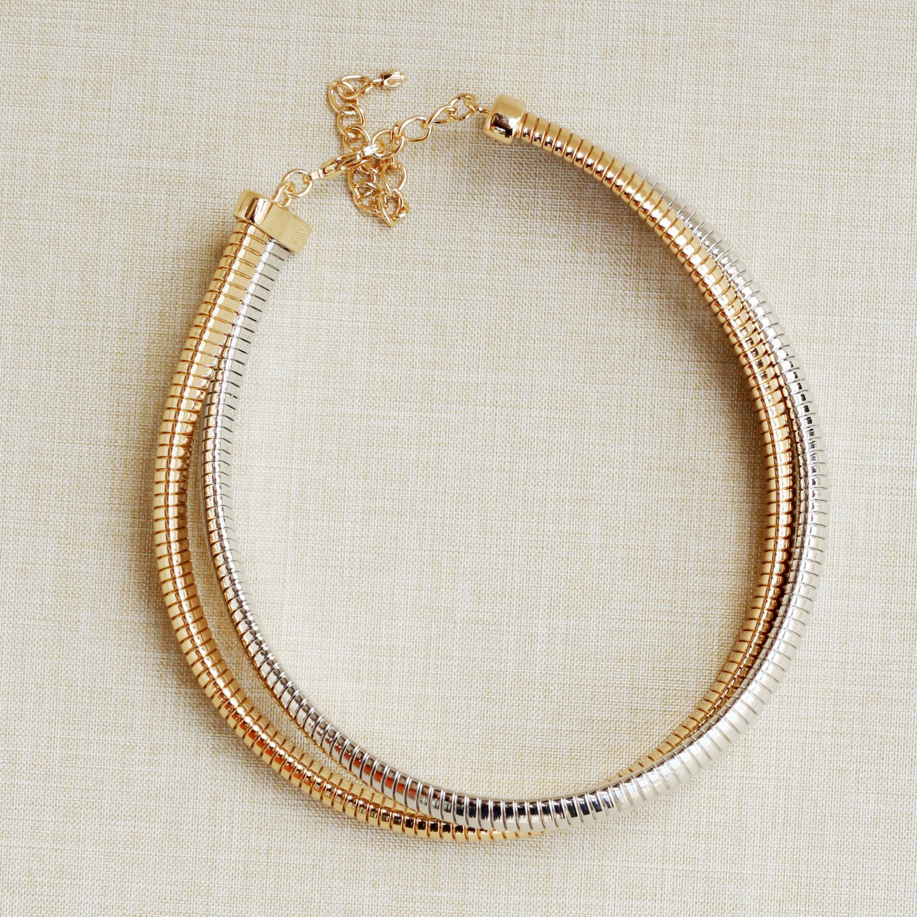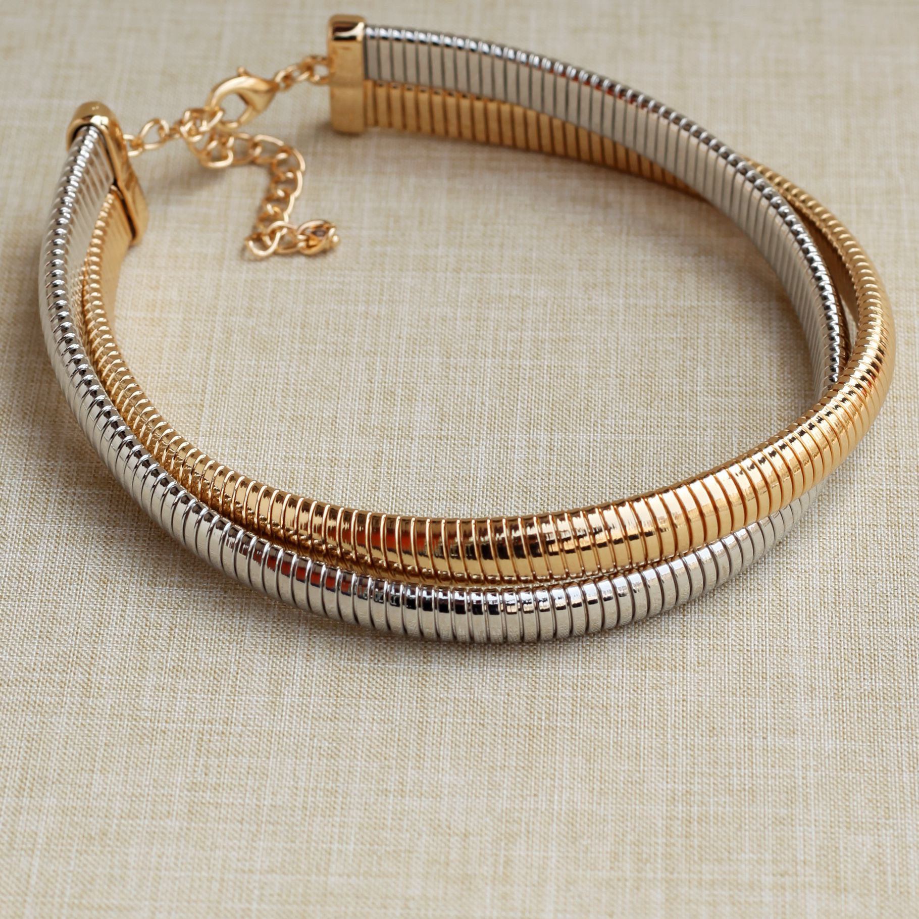 欧美时尚个性简约金属风金银双色拼接叠搭弹簧形项圈项链摇滚风