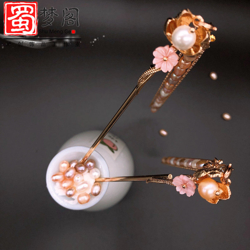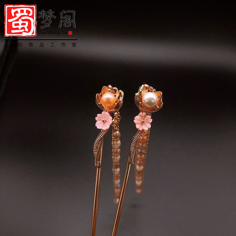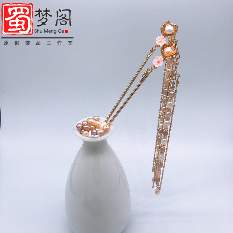 蜀梦阁原创汉服明制唐风宋魏晋简约珍珠长流苏发簪可做手链王富贵