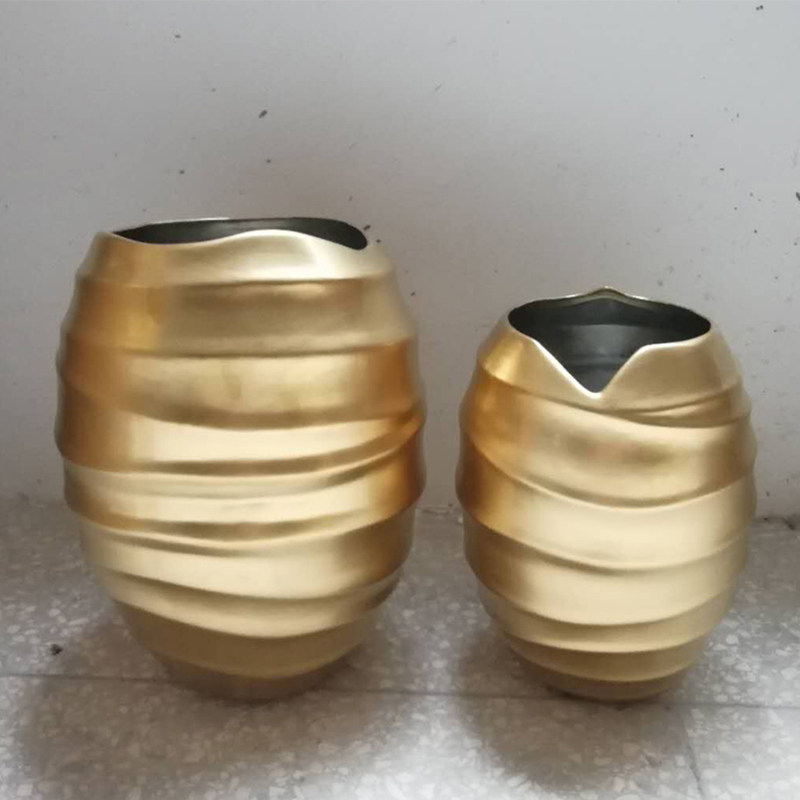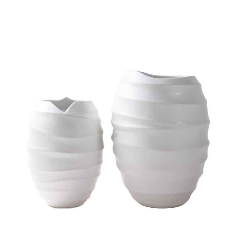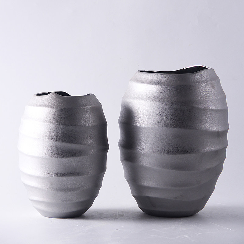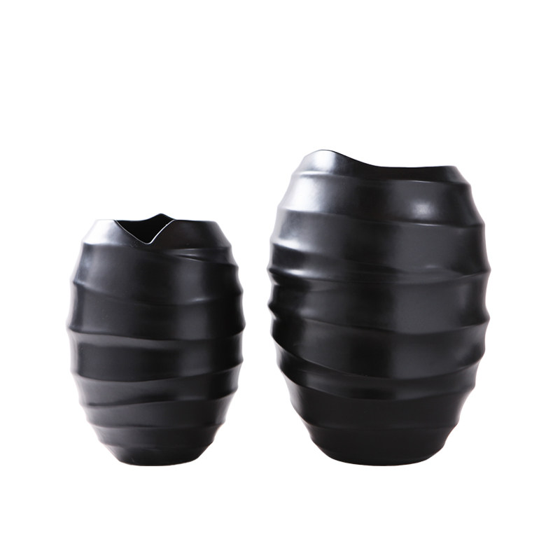 现代新中式软装样板房间客厅陶瓷灰色皮纹环形伸缩纹花器花瓶摆件