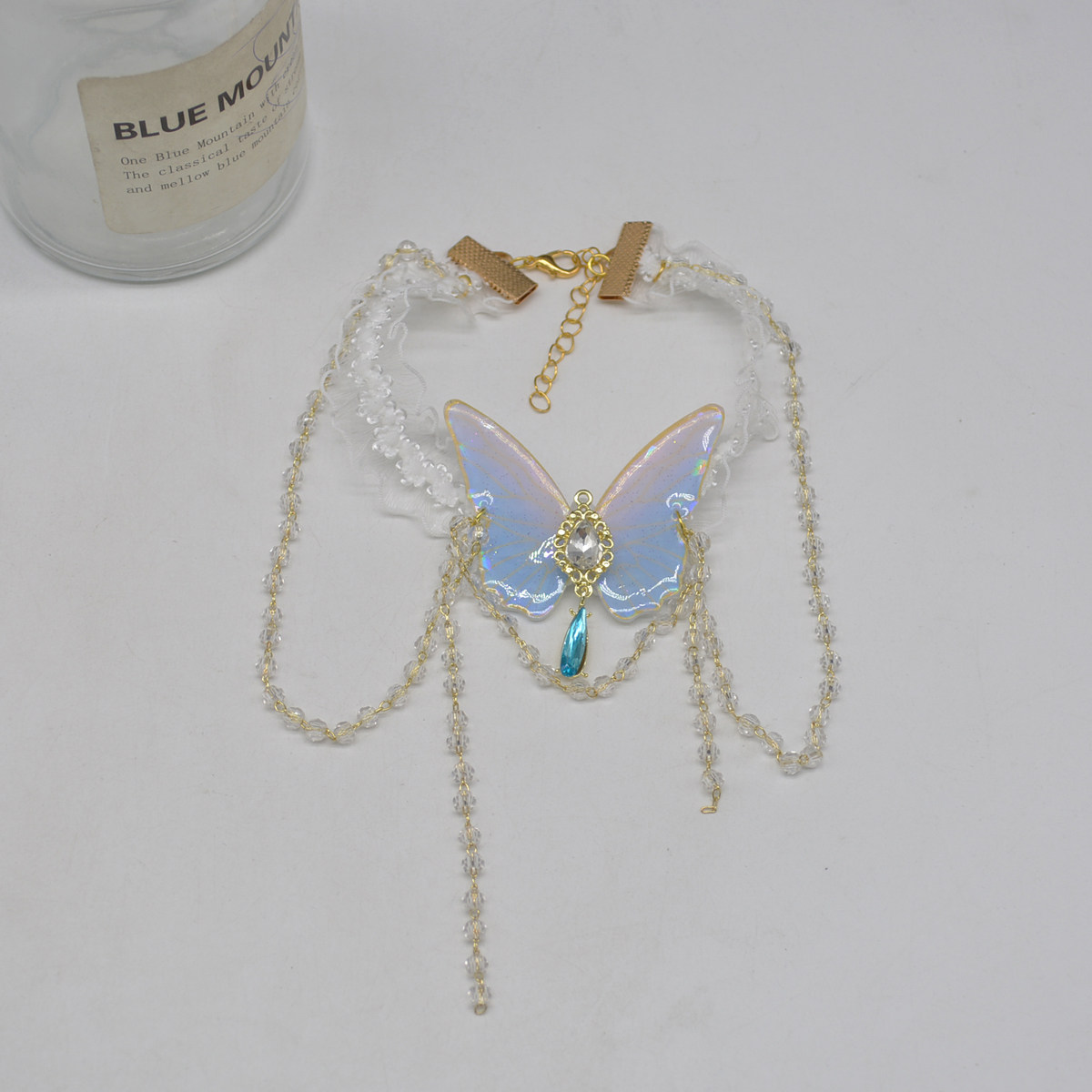 纯欲风超仙蕾丝蓝色蝴蝶水晶流苏臂环手链女ins风时尚大腿链配饰