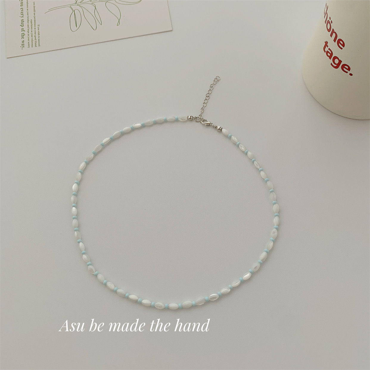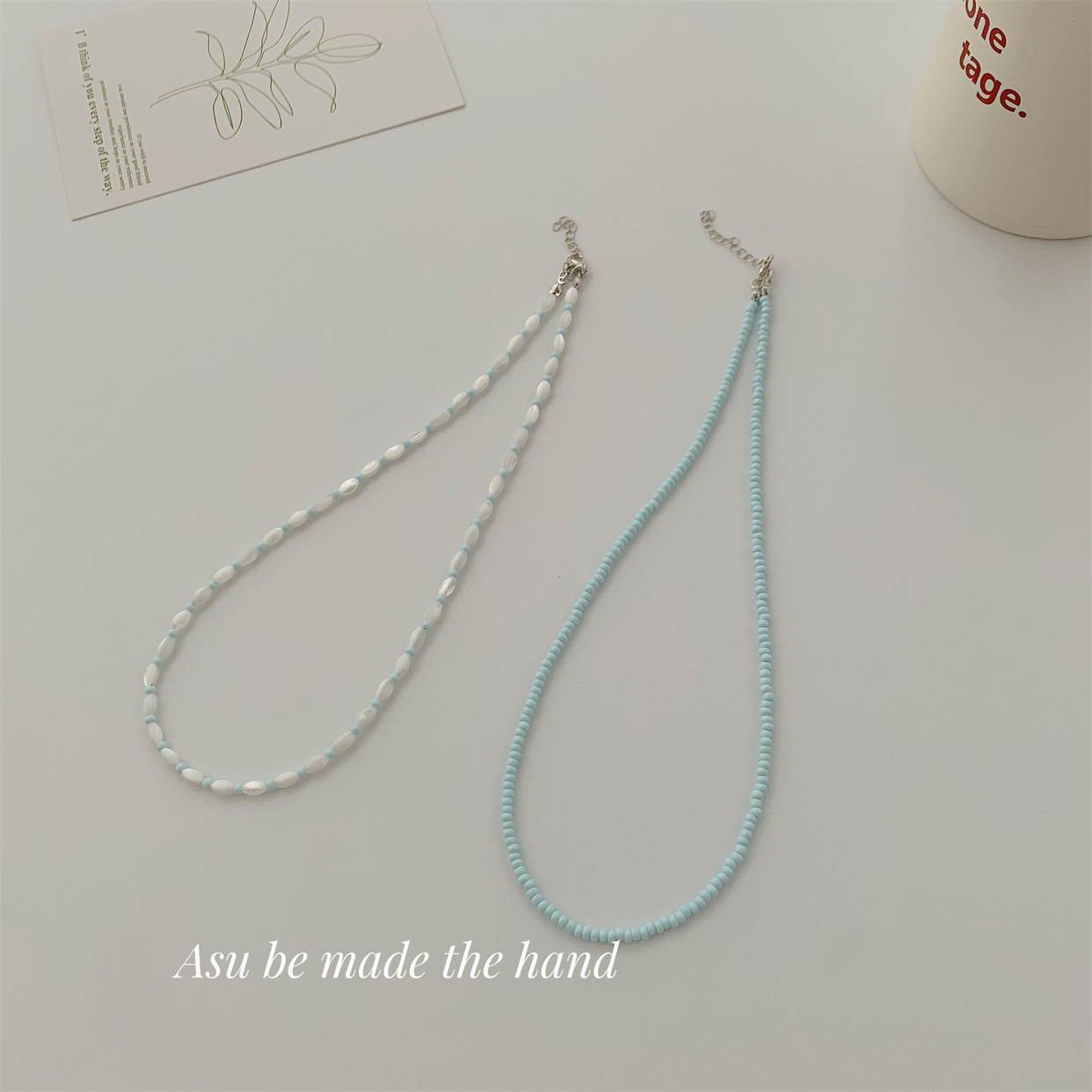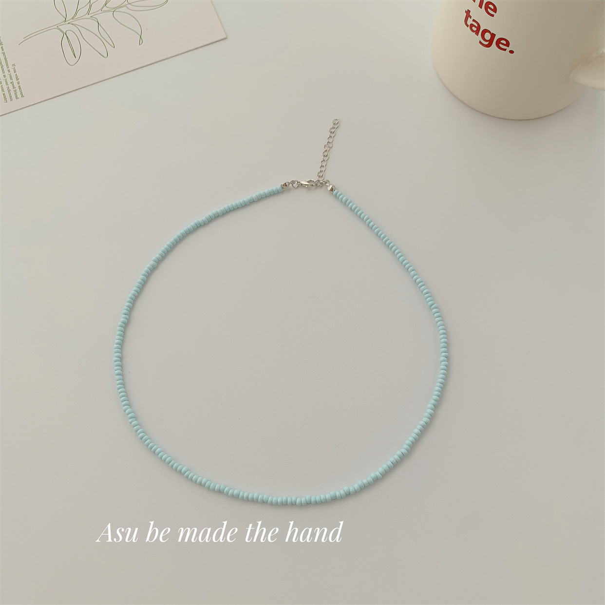 【满25包邮】气质甜美浅蓝色圆珠链串珠锁骨链项链女2025年新款