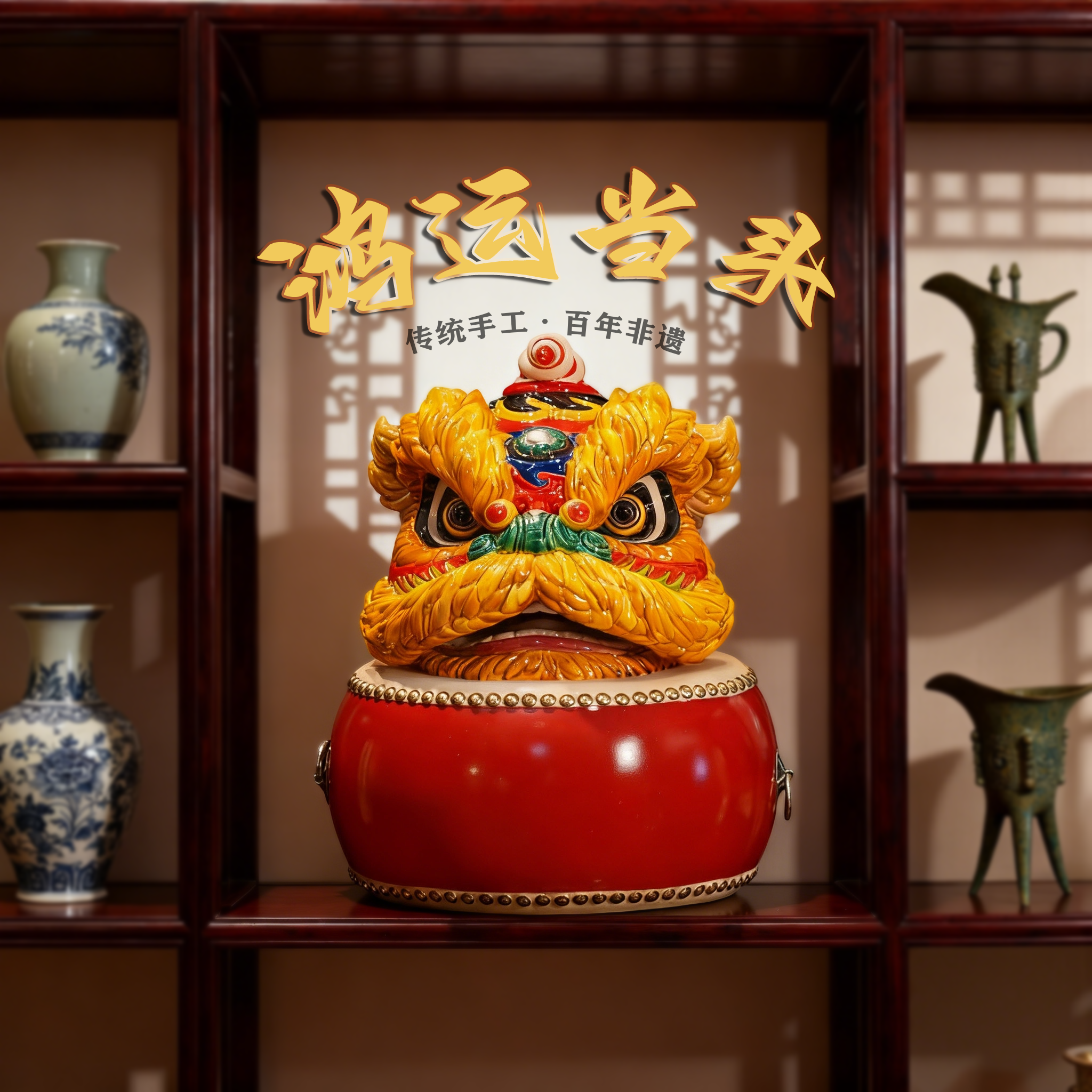 【本尼家】大号-国潮醒狮摆件舞狮头非遗手工陶瓷开业大吉礼物