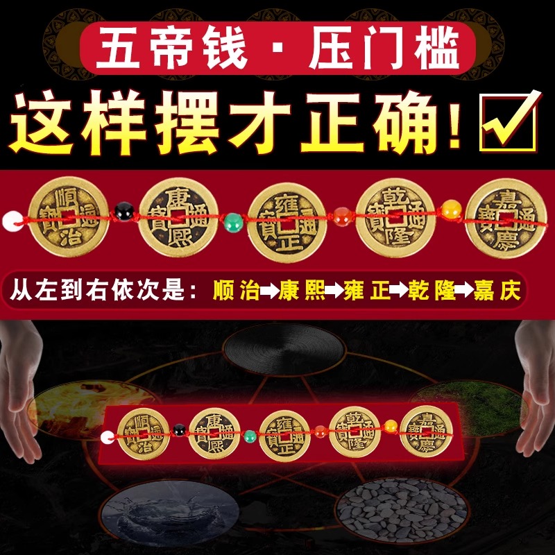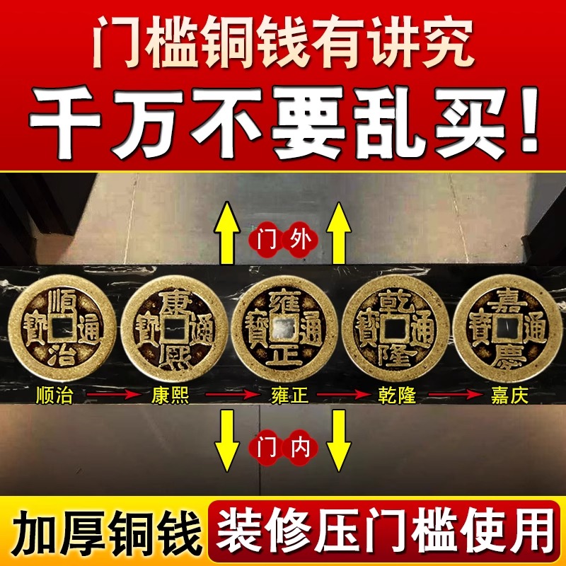 五帝币加厚铜钱五色珠压门槛摆件压枕头地毯车垫底大门口门对门
