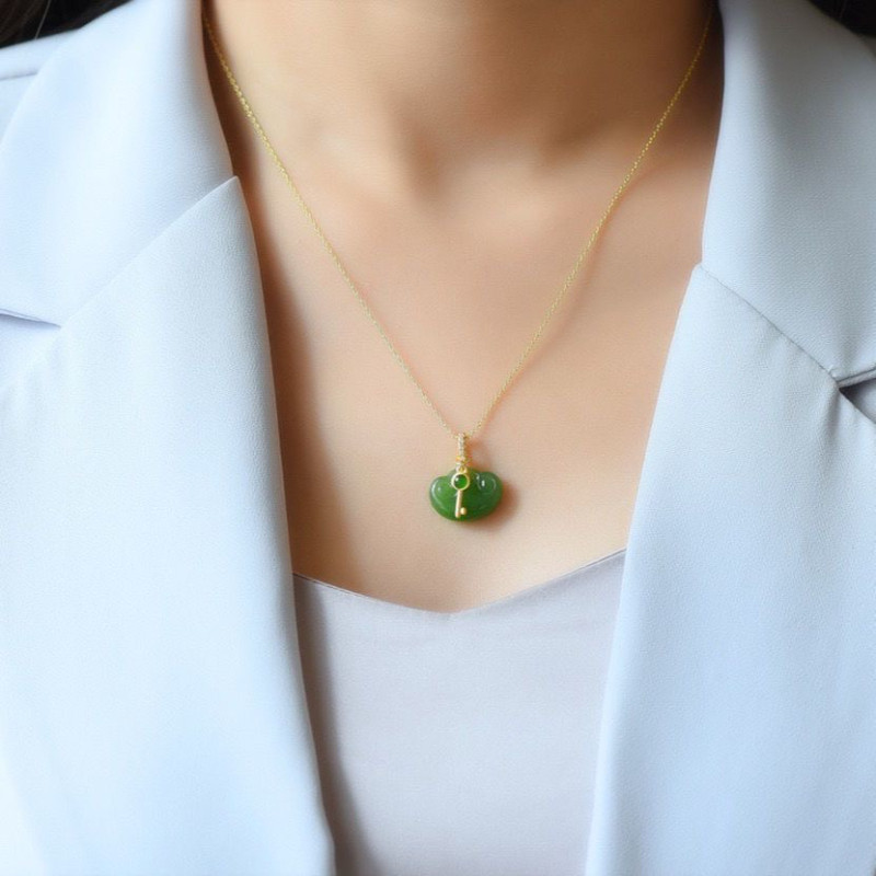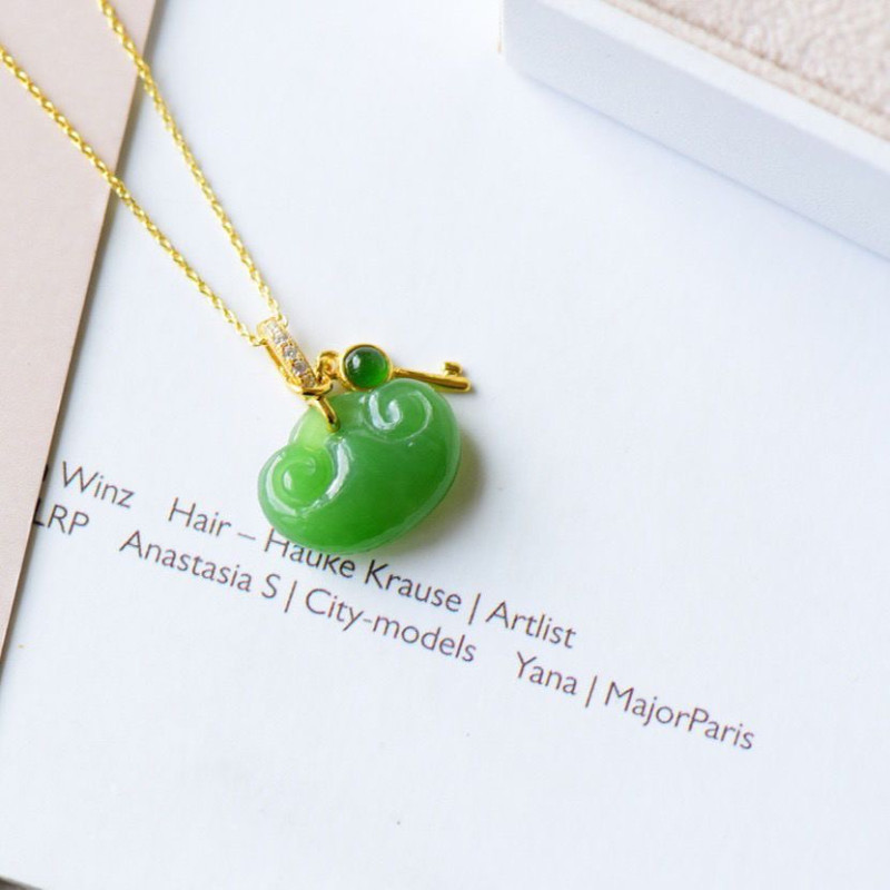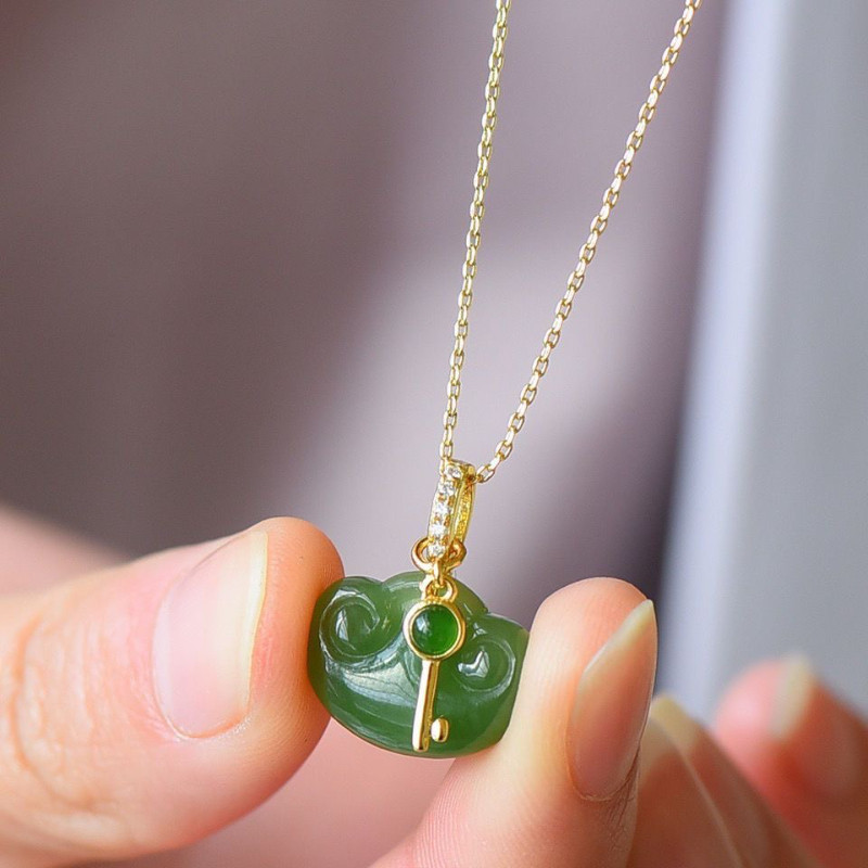 成熟气质古风项链 绿色石搭配小钥匙万事吊坠女款 设计感汉服配饰