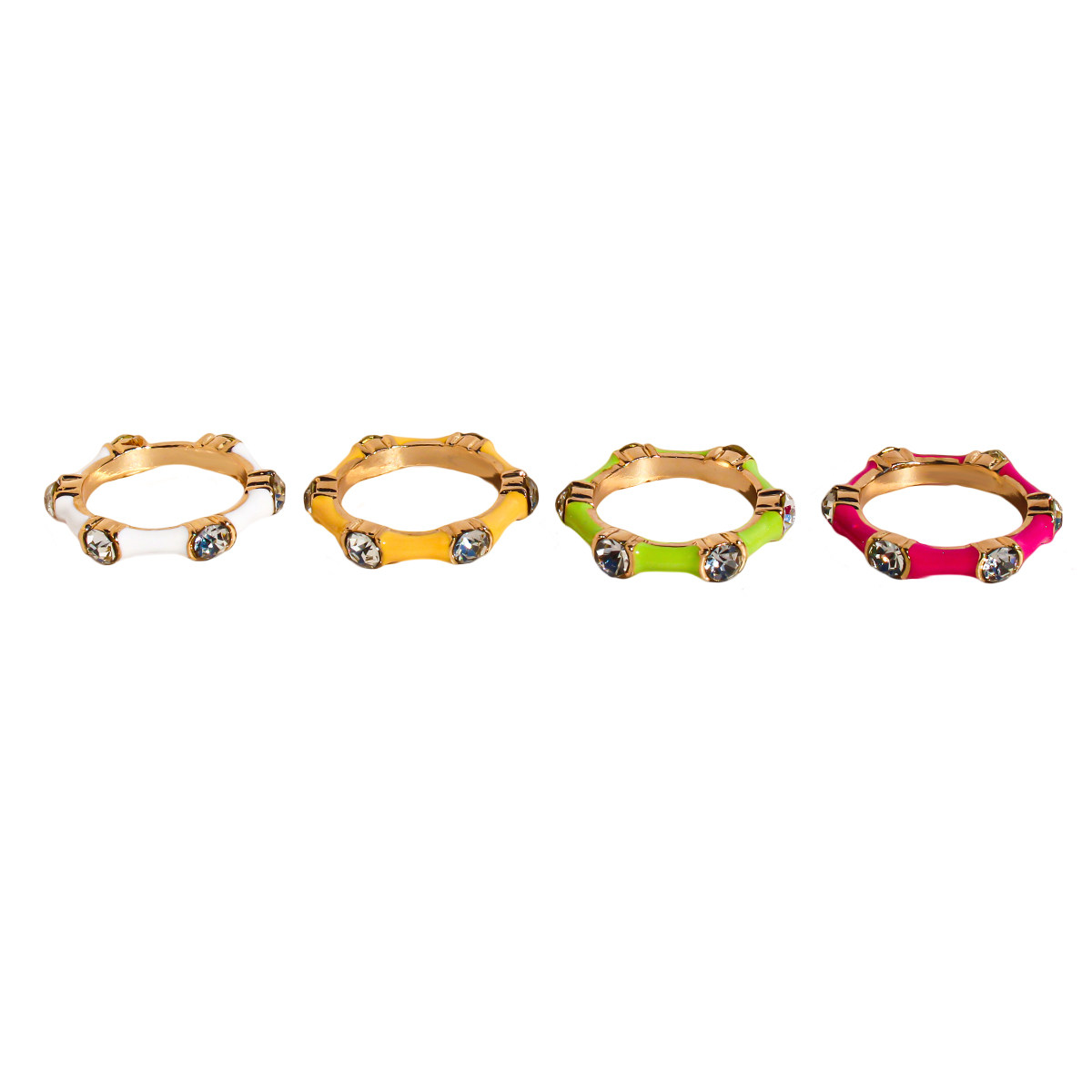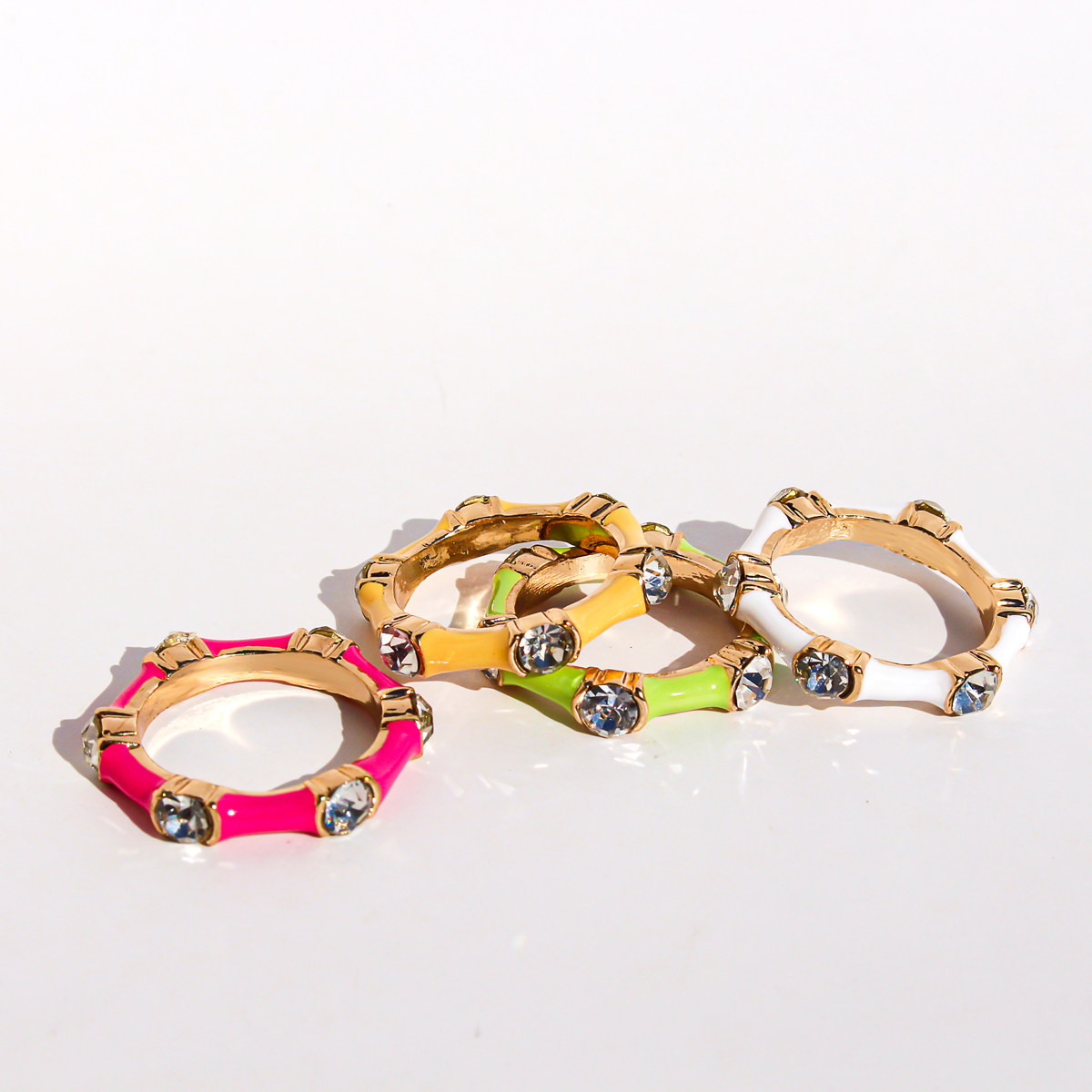 四组套装外贸饰品多巴胺彩色珐琅釉竹节戒指镶嵌闪钻叠戴指环V210