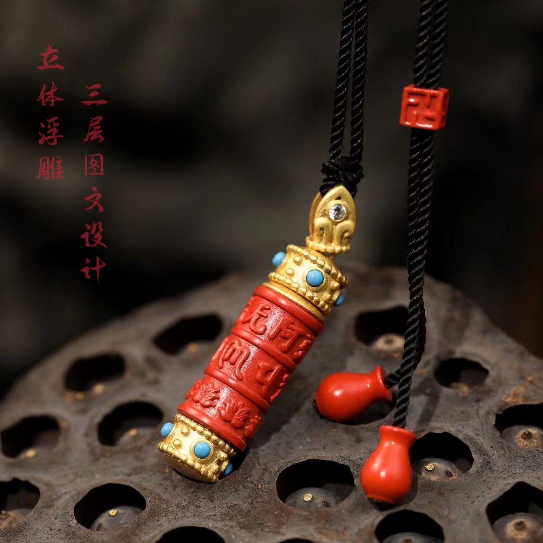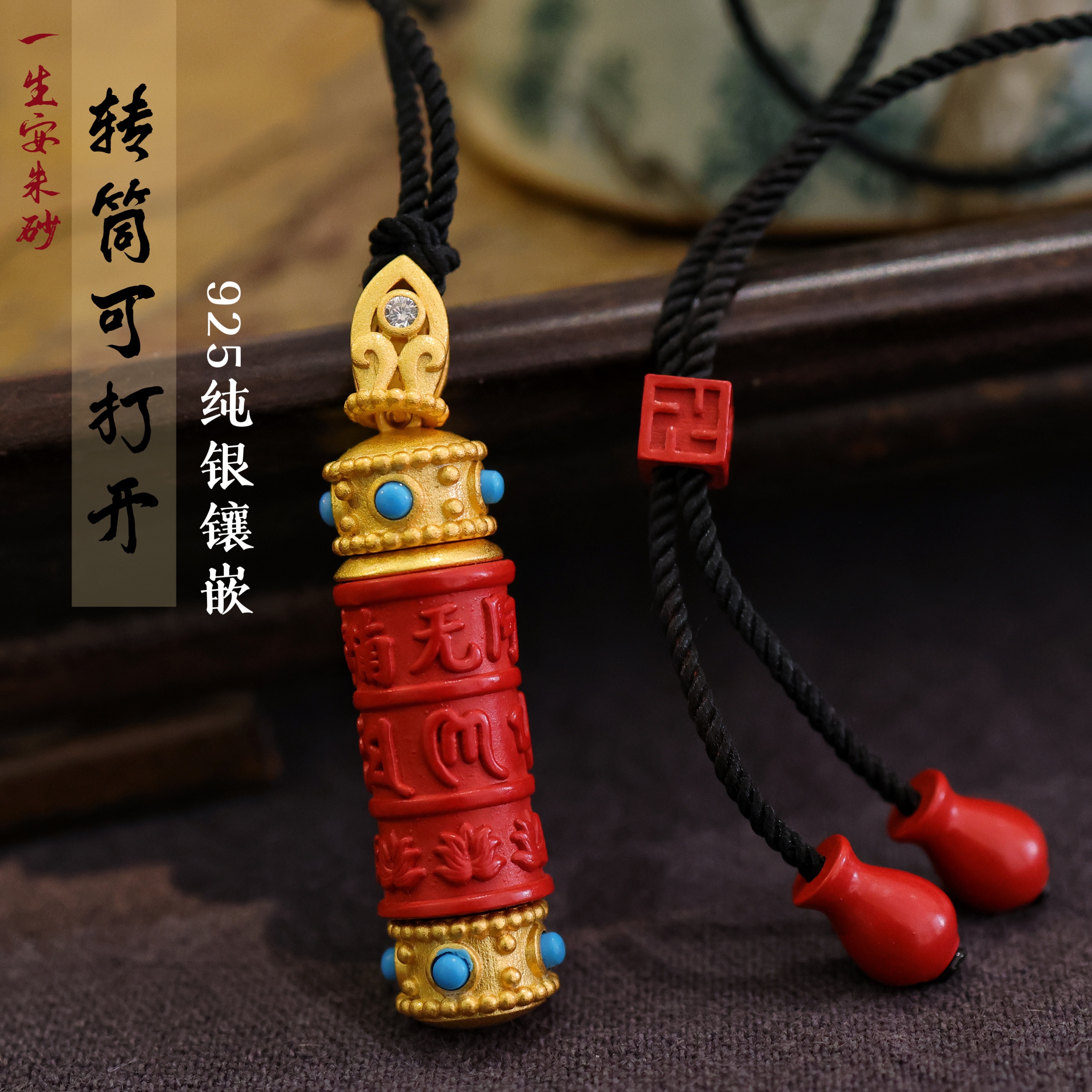一生安朱砂转转筒吊坠可打开嘎乌盒男女本命年平安项链新中式礼物