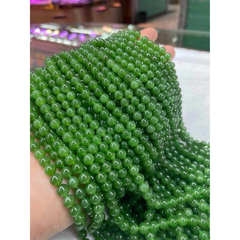 和田玉碧玉,干净细腻,阳绿色超冰透,无裂无黑点尺寸:6mm108棵