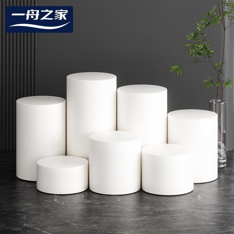 展示台模特圆形柱墩子橱窗摆台白色木质地台高低展台架柜装饰