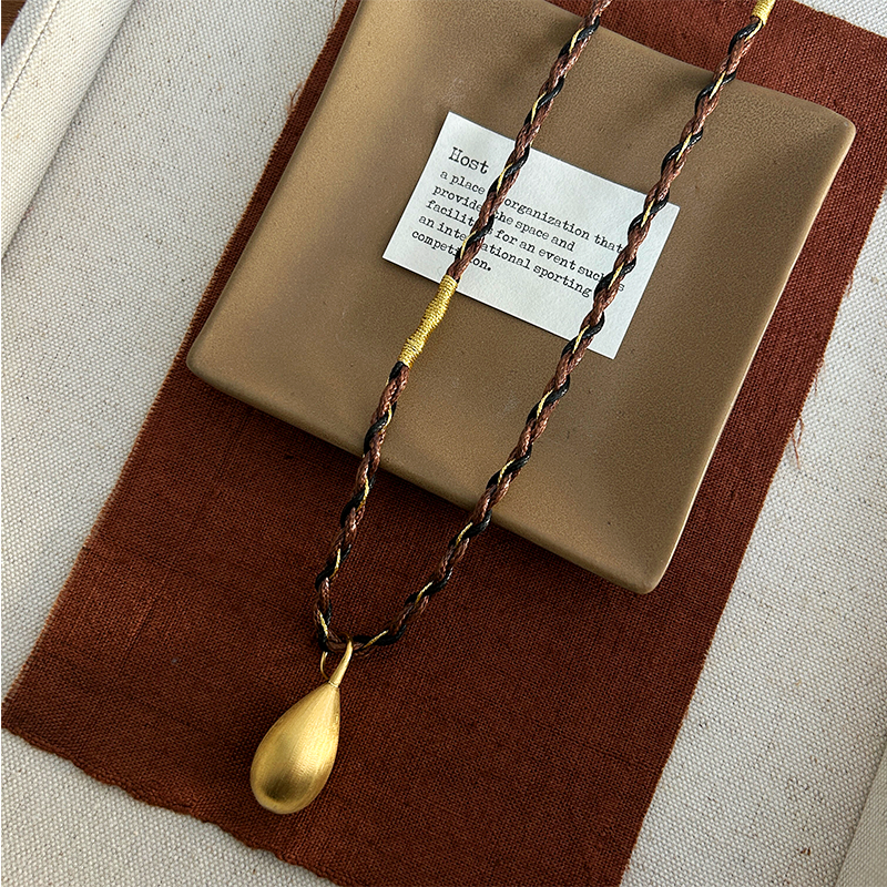 手工棉绳编织鎏金厚镀大号水滴吊坠项链毛衣链复古风高级感小众女