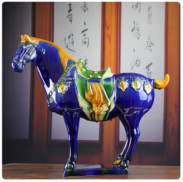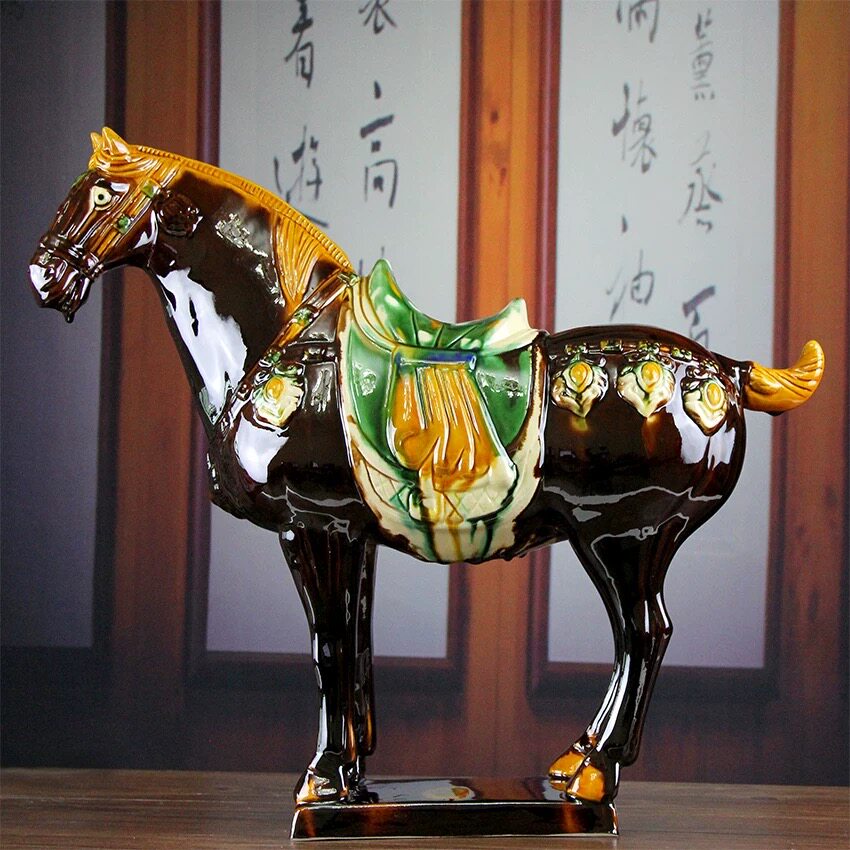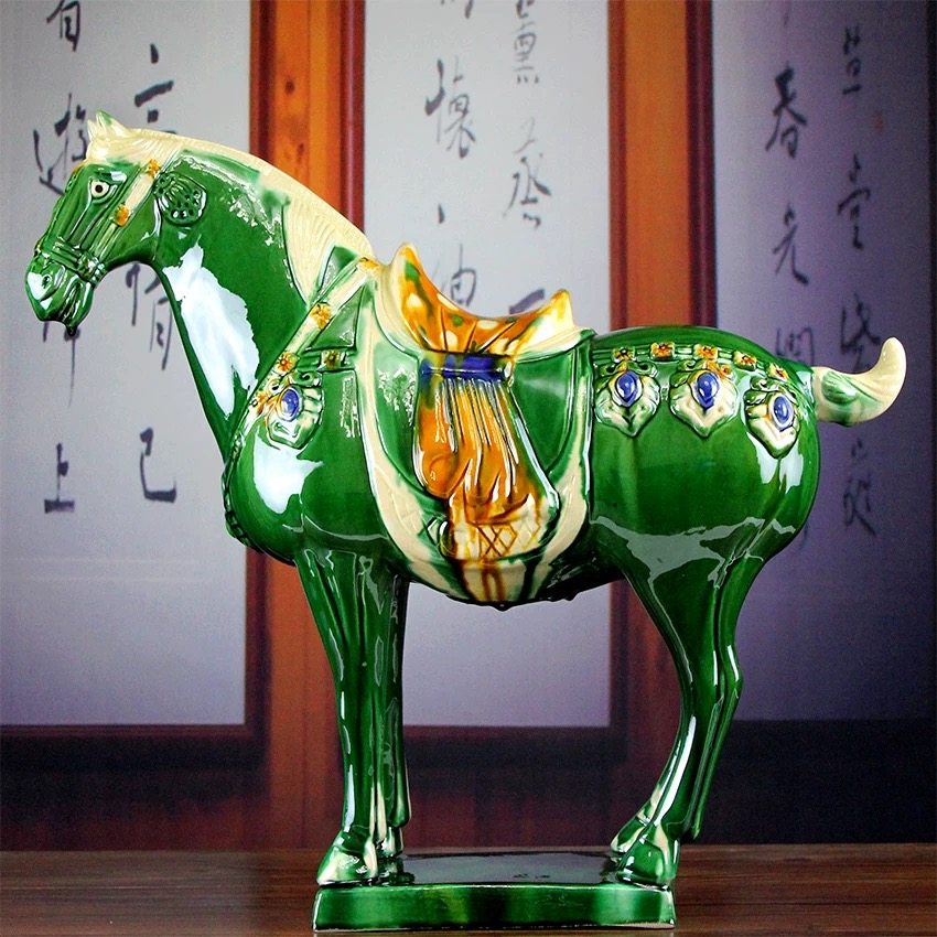 唐三彩马摆件新中式古典家居装饰陶瓷马客厅电视柜玄关工艺品招财