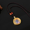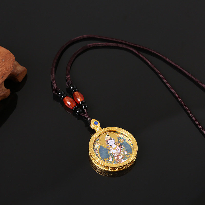 双面圆形西藏唐卡嘎乌盒金色手绘文殊绿度母阿弥陀佛十二生肖挂件