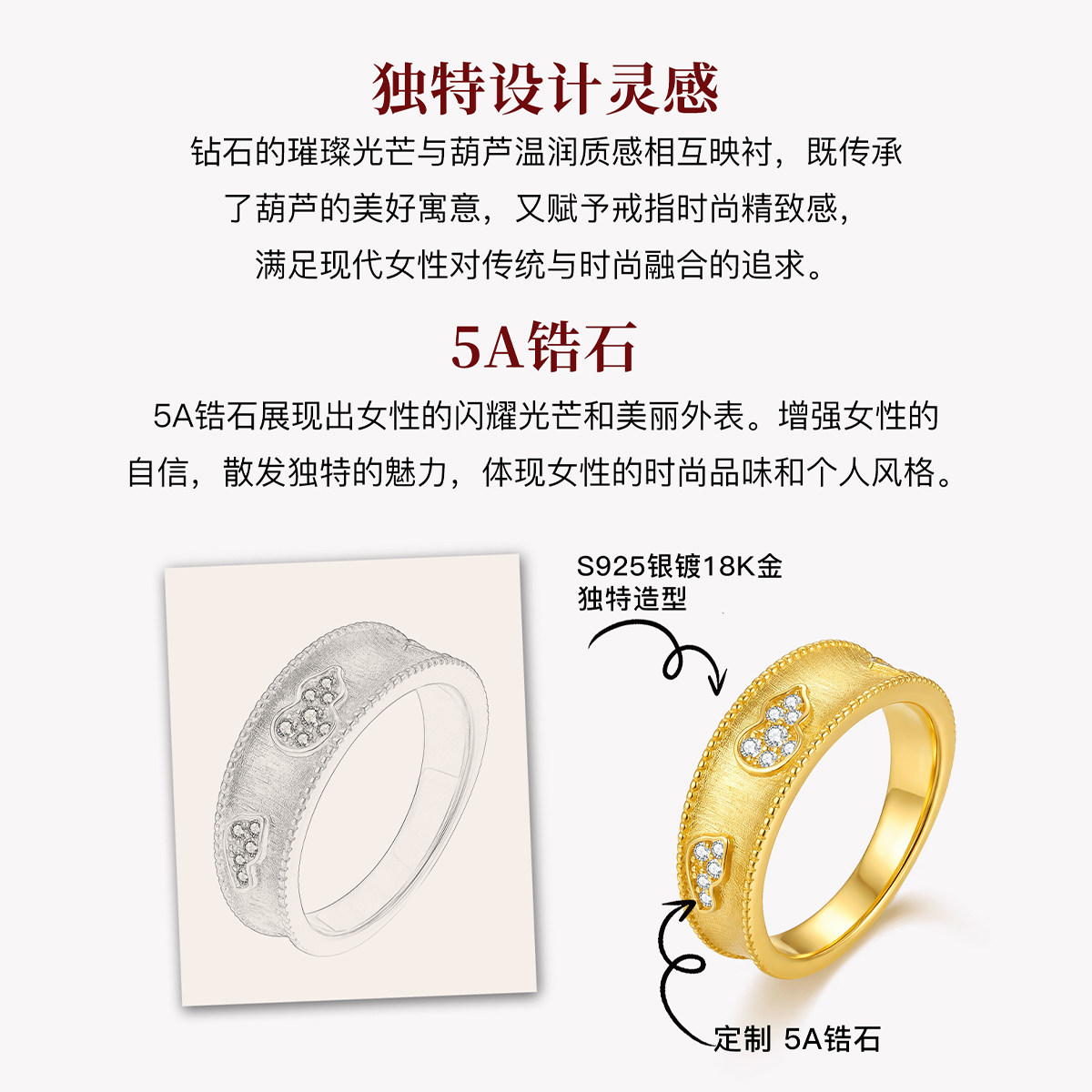 MITHAOL新中式复古镶钻葫芦戒指轻奢高级感小众设计指环女款珠宝