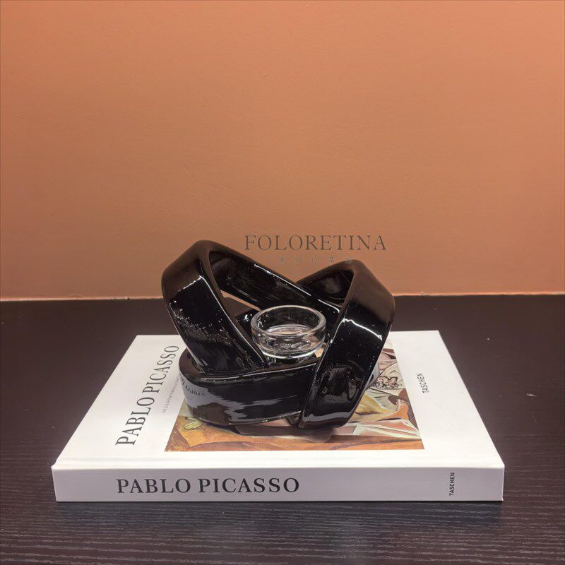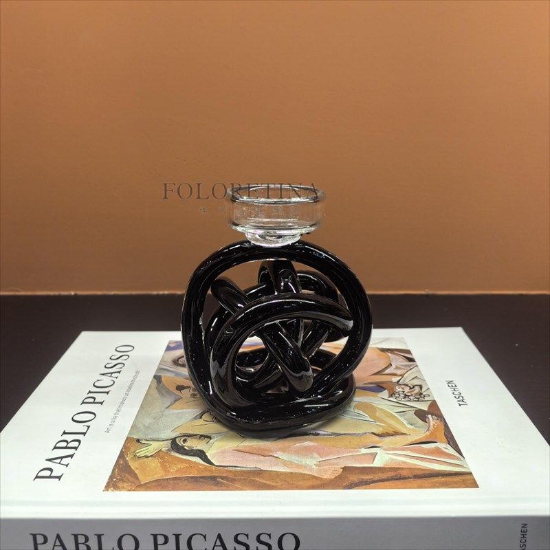 中古侘寂风黑色麻绳设计烛台装饰品摆件样板间茶几台面扭结烛台