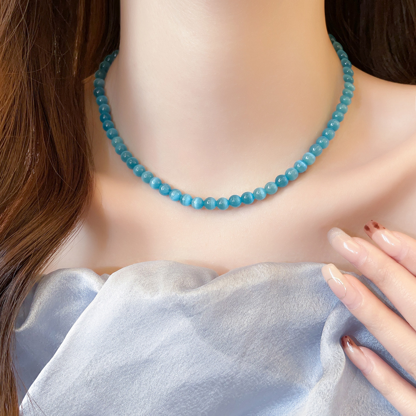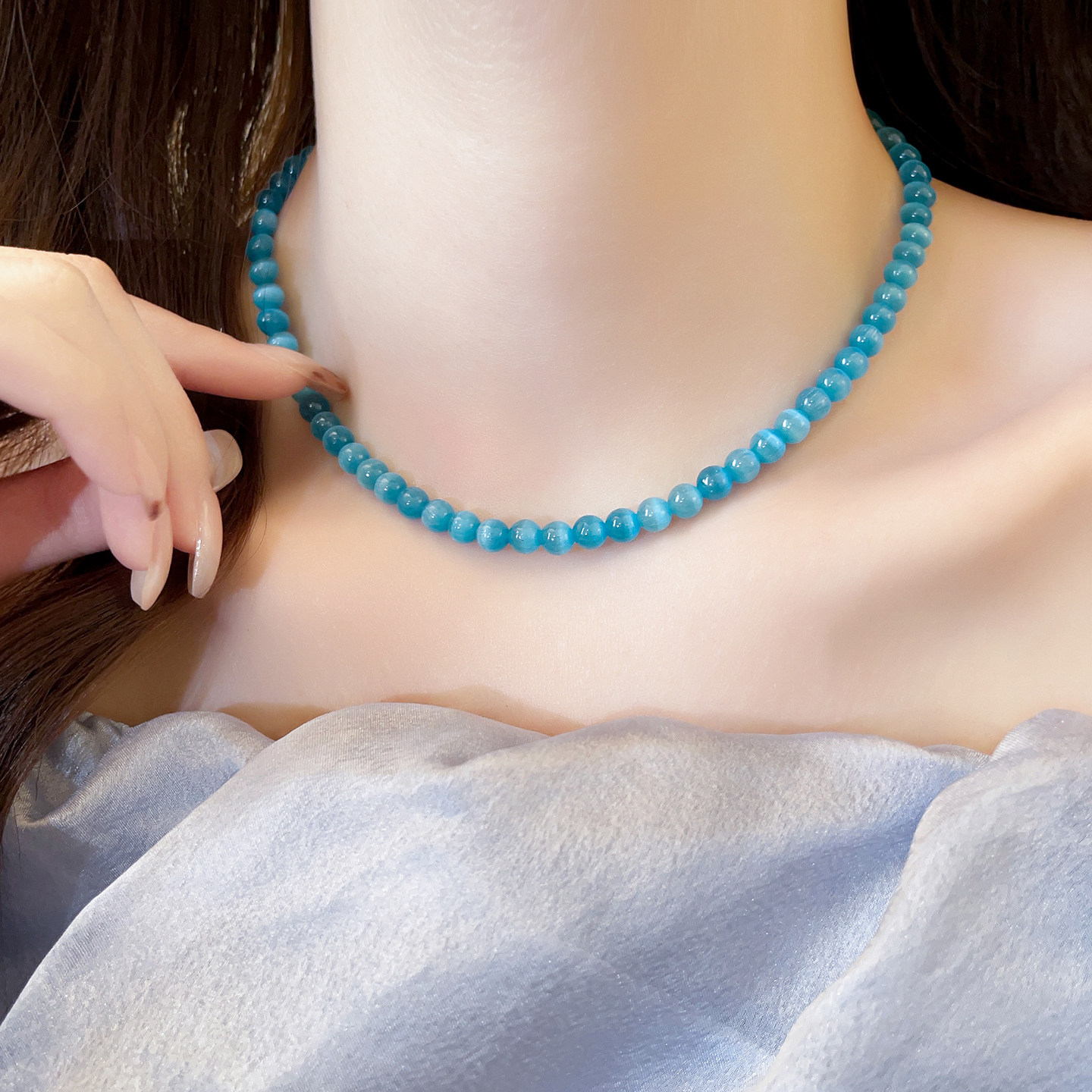 蓝色猫眼石项链女款2026新款颈链饰品高级感轻奢小众高级感锁骨链