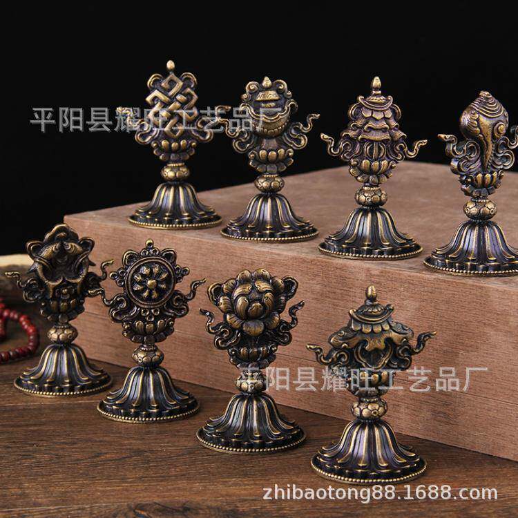 纯 铜法器八吉摆祥堂件吉祥八宝居家摆件高9.8BJX320.1cm金黄色