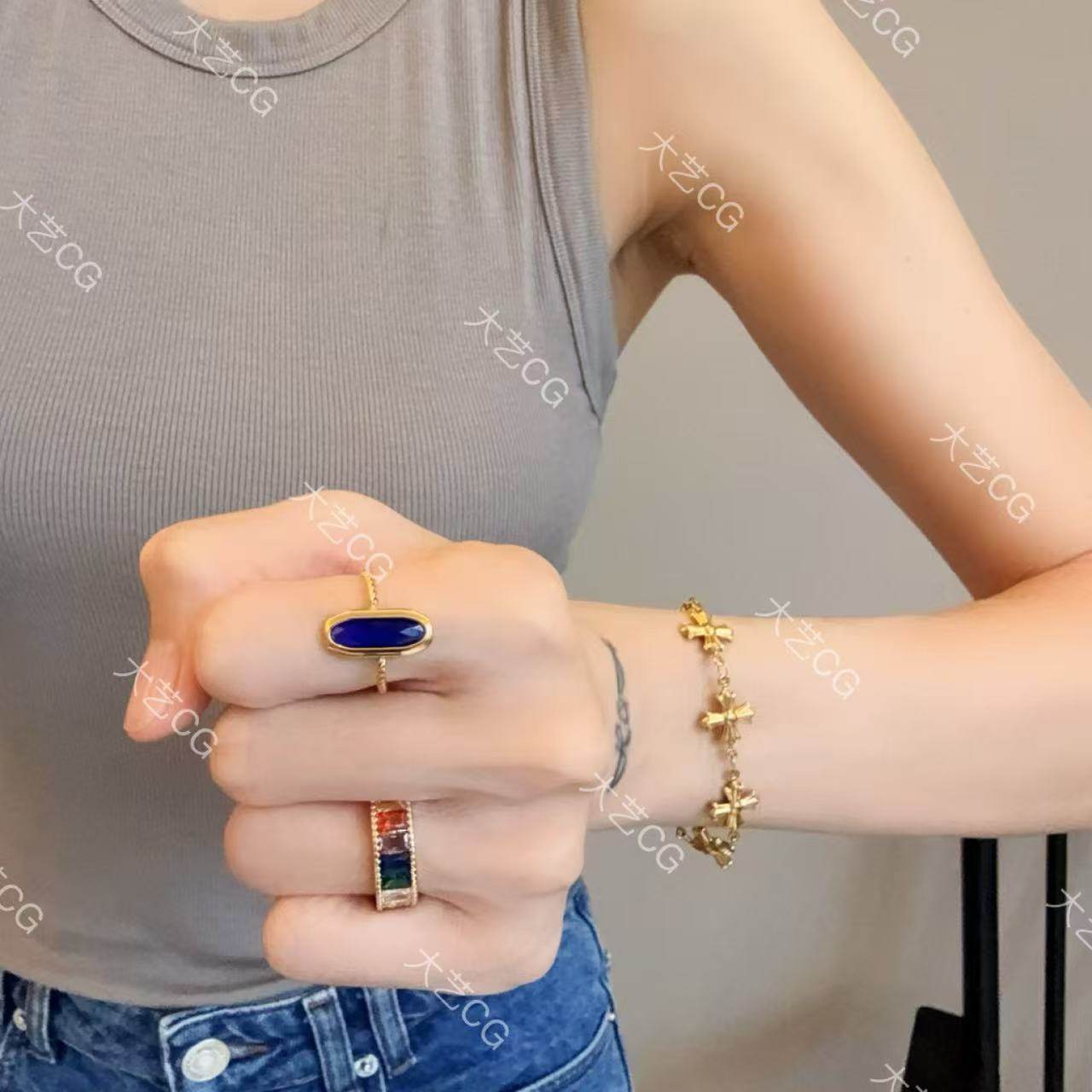 蓝色超细戒指正反可戴彩色可调节指环多种戴法RICus 0425