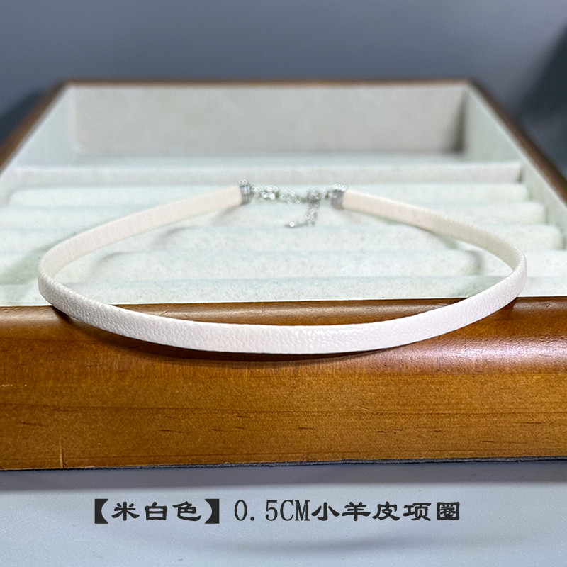 不掉色白色羊皮绳项圈女choker颈链小众设计时尚气质2026年新款潮