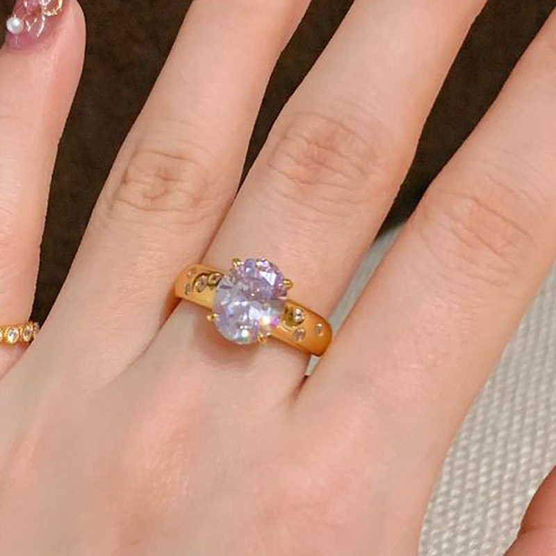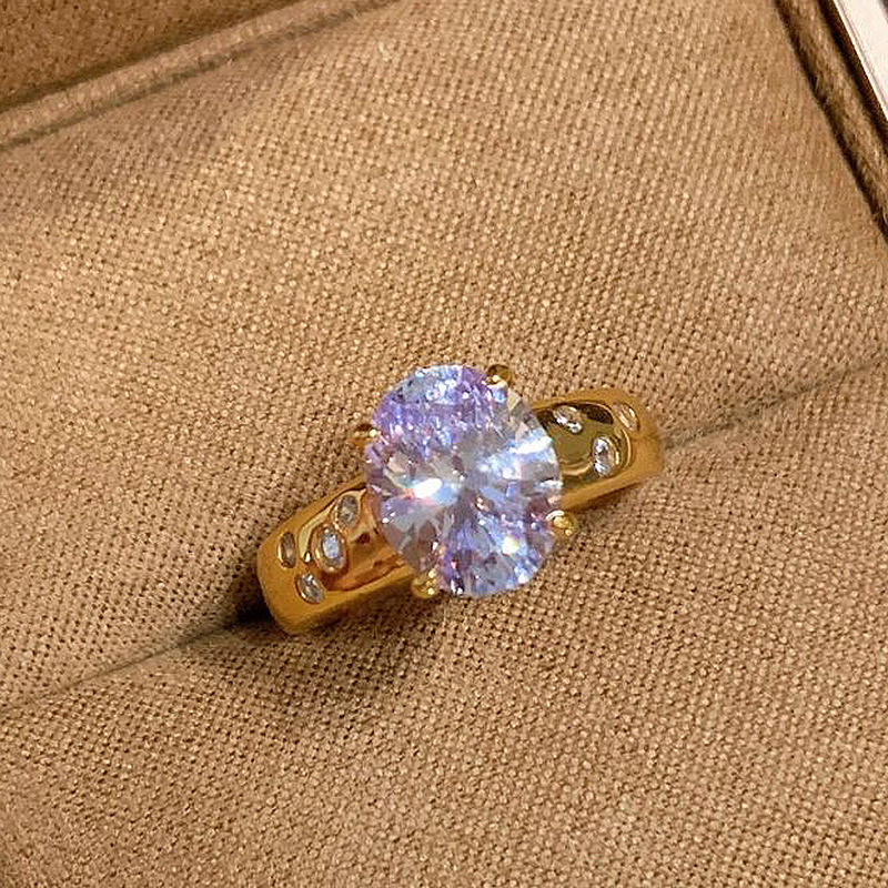 小红书爆款紫气东来鸽子蛋戒指古法点钻爆闪紫色宝石指环